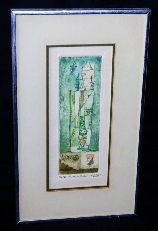 Vintage Spanish Abstract Etching Print "Torre de Babel" by G. Res (CuM)