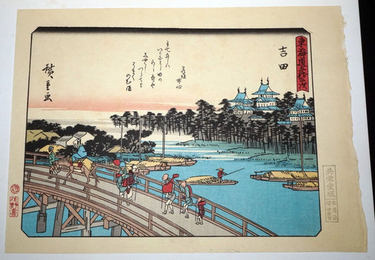 Vtg Japanese Woodblock Repro 53 Stations Tokaido #35 Yoshida by Hiroshige (OdC)