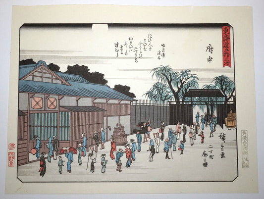 Vtg Japanese Woodblock Repro 53 Stations Tokaido #20 Fuchu by Hiroshige (OdC)