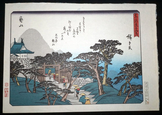 Vtg Japanese Woodblock Repro 53 Stations #47 Kameyama Tokaido by Hiroshige (OdC)
