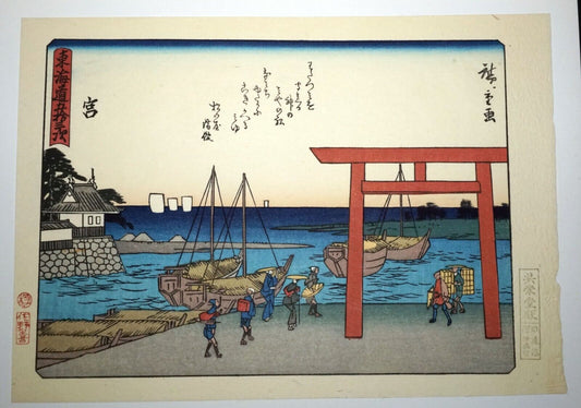 Vtg Japanese Woodblock Repro 53 Stations Tokaido #41 Miya by Hiroshige (OdC)