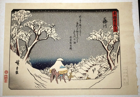 Vtg Japanese Woodblock Repro 53 Stations Tokaido #38 Fujikawa by Hiroshige (OdC)