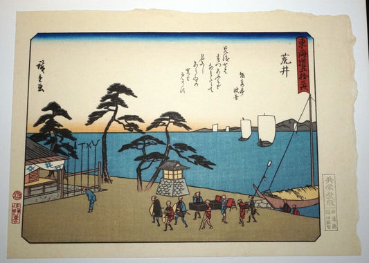 Vtg Japanese Woodblock Repro 53 Stations Tokaido #32 Arai by Hiroshige (OdC)