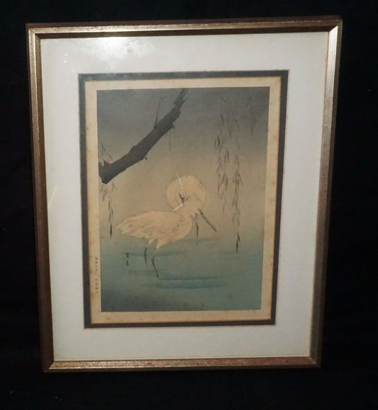Vtg. Japanese Woodblock Print Two Egrets by Willow by Watanabe Seitei (TeY)