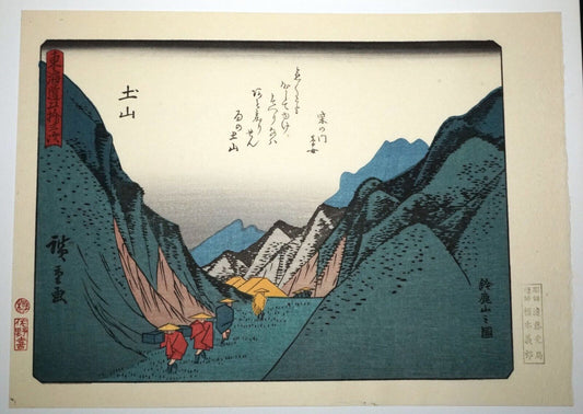 Vtg Japanese Woodblock Repro 53 Stations Tokaido #50 Tsuchiyama Hiroshige (OdC)