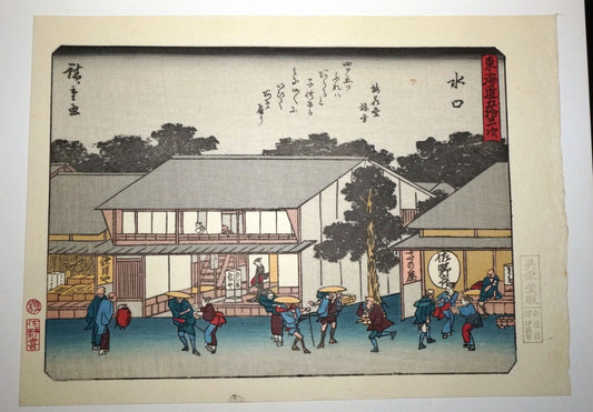 Vtg Japanese Woodblock Repro 53 Stations Tokaido #51 Minakuchi Hiroshige (OdC)