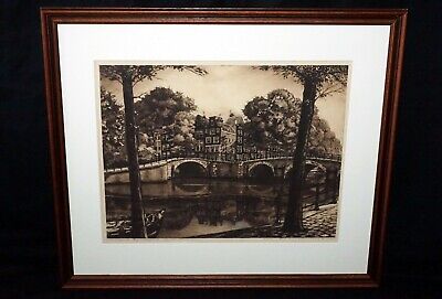 Vtg. Dutch Large Etching Print Amsterdam by Cornelis Brandenburg (1884-1954)(***