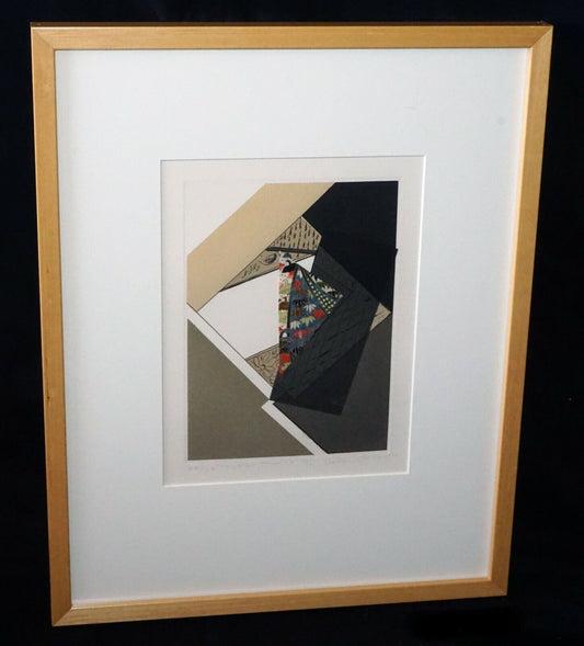 '90s Hawaii Etching Print Collage "Tokyo Twist III" Helen Gilbert (1922-02)(SaJ)