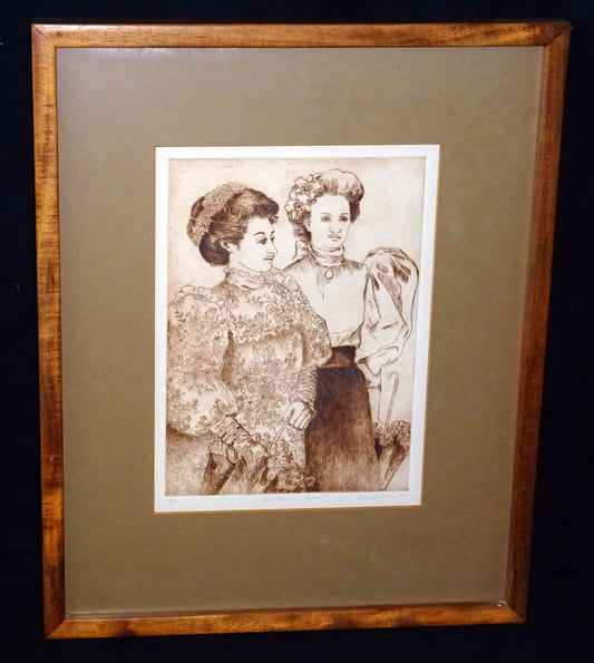 '80 Hawaii Sepia Etching Print 10/175 Two Hawaiian Ladies by Franki Morris (Wil