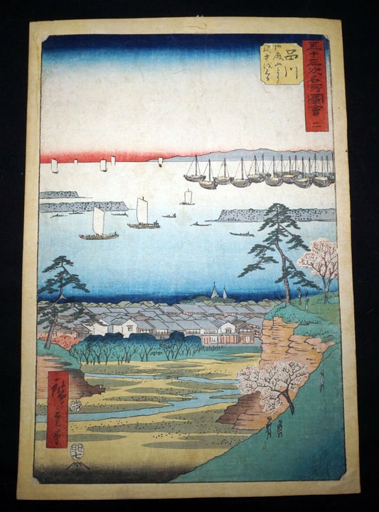 1855 Japanese Woodblock Print Shinagawa by Utagwa Hiroshige (1797-1858)(AHB)