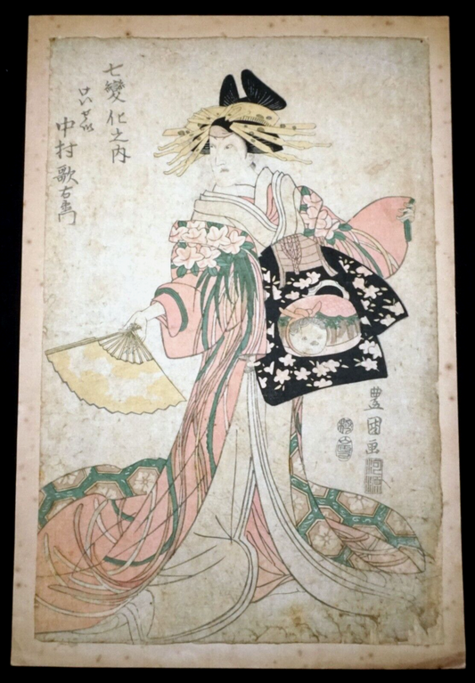 18C Japanese Woodblock Print Geisha Holding Fan by Toyokuni (KiL)11