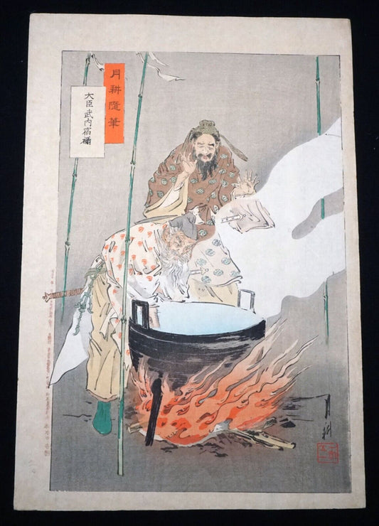 1890s Japanese Woodblock Print Boiling Water by Ogata Gekkō (1859-1920)(KiL)13