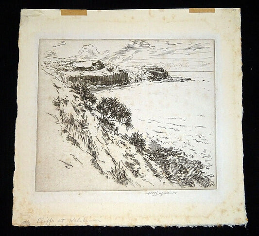 1920 Hawaii Etching Print "Cliffs at Kalihiwai, Kauai" by Huc M. Luquiens (ThB)