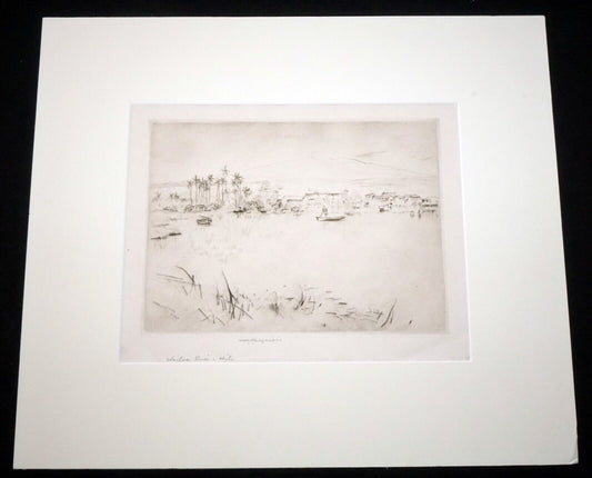 1920 Hawaii Etching Print "Wailoa River, Hilo" Huc M. Luquiens (1881-1961) (FeL)