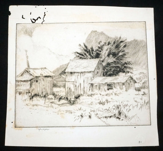 1920s Hawaii Etching Print "Homestead" by John Melville Kelly (1879-1962)(Kel)