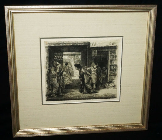 1920s Hawaii Etching Print "Chinatown" by Horatio Nelson Poole (1884-1949)(CWo)