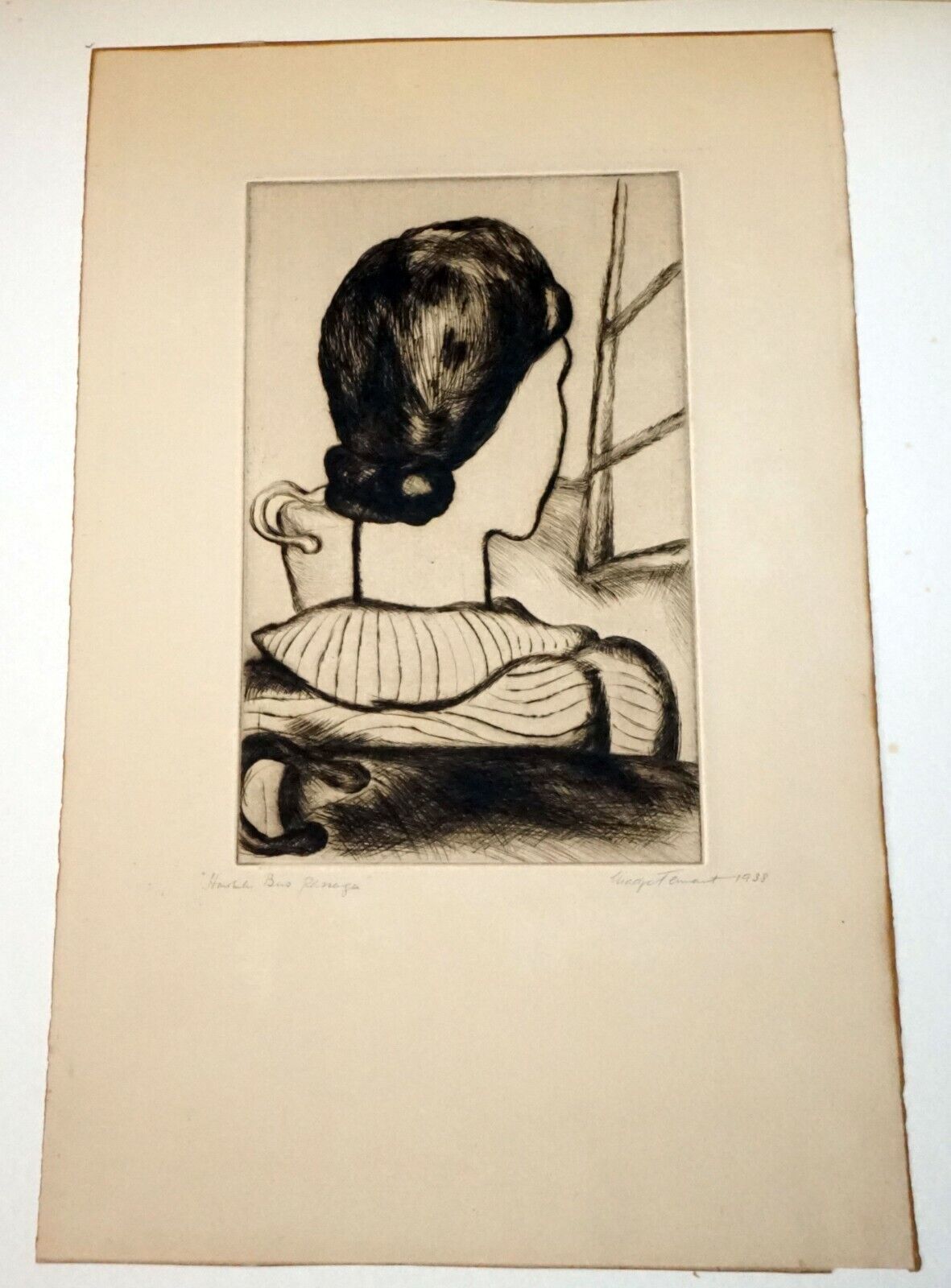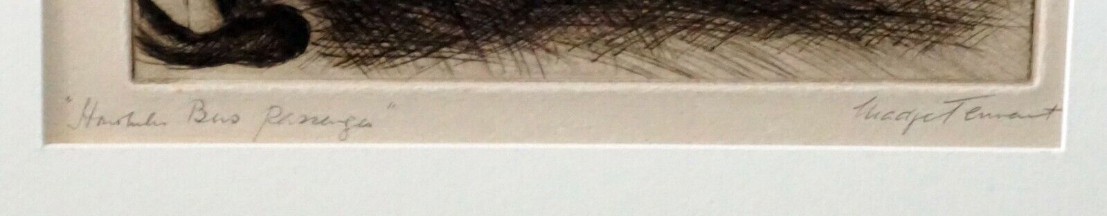 1938 Hawaii Etching Print "Honolulu Bus Passenger" by Madge Tennent (DAT)#15