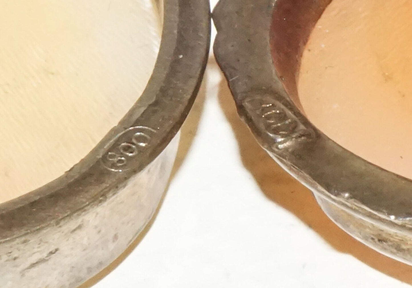 Up for sale from a recent estate in Honolulu Hawaii these 2x Vintage Italian 800 silver framed shell cameos that feature the busts of two beautiful female figures. The condition is described above for more information please check the photos.