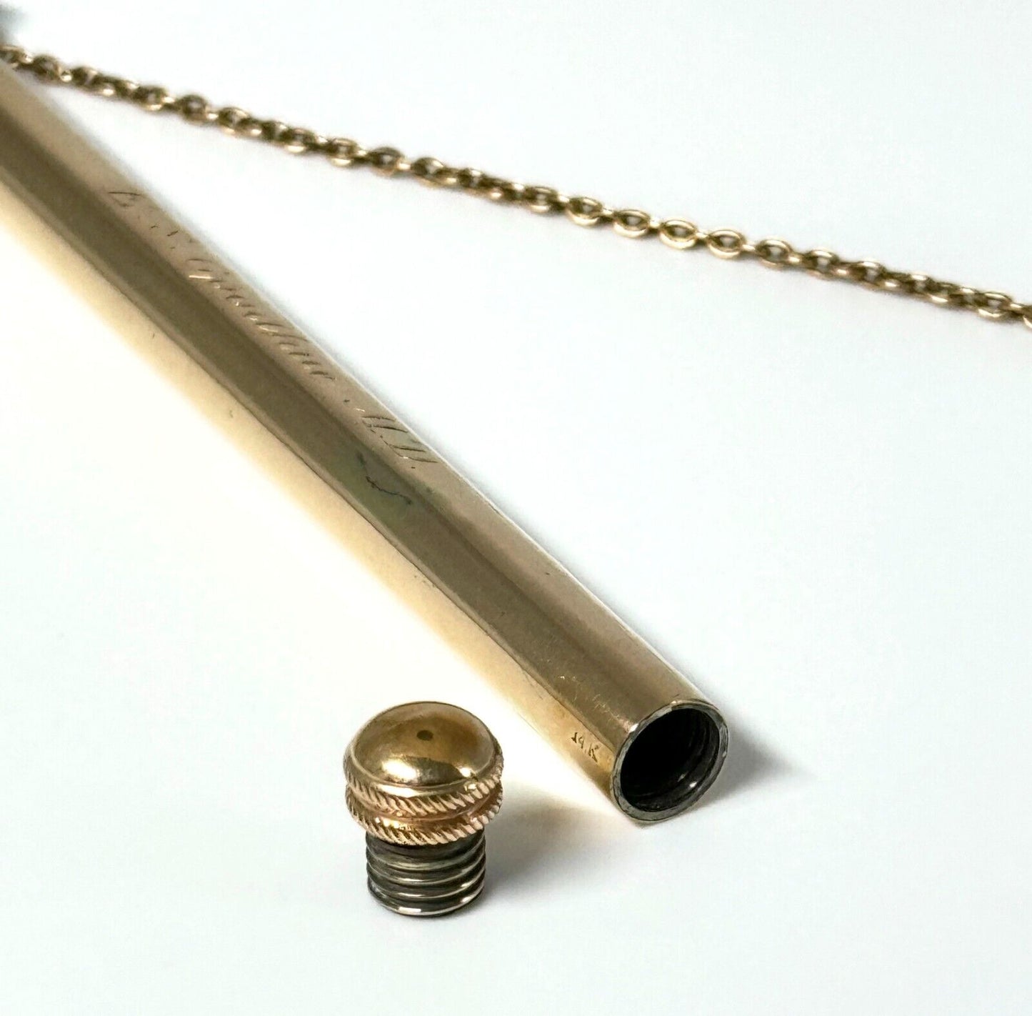 Antique 14k Yellow Gold Physician Thermometer Holder, Chain & Pin (MiM)