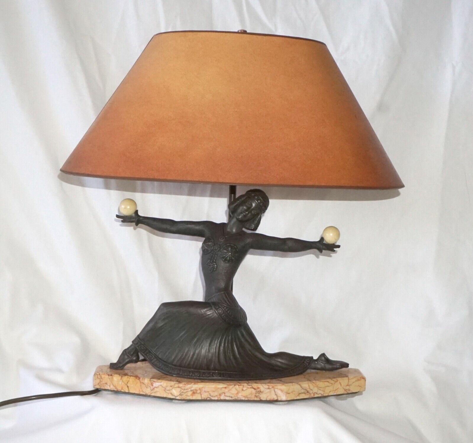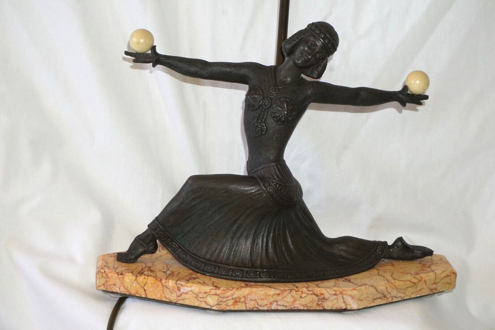 Vintage Art-Deco Bronze & Marble Lamp of a Dancing Figure (HiC)