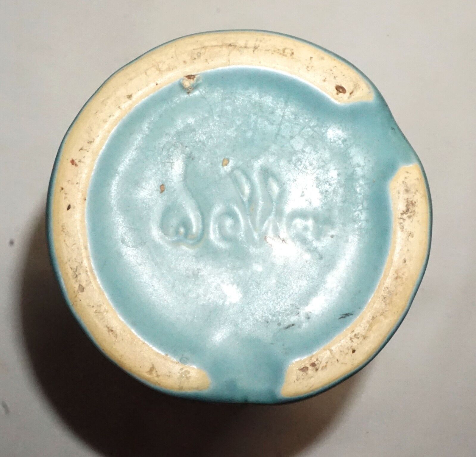 This vintage Arts & Crafts Weller Pottery vase is a stunning addition to any collection. The matte blue and green finish, along with the oak leaf pattern, makes it a unique and eye-catching piece. This original vase is perfect for displaying flowers or simply as a decorative piece. Crafted by the renowned brand Weller, this vase is a true piece of art. The blue and green colors complement each other beautifully, creating a calming and serene atmosphere. This vase is perfect for collectors or anyone looking for a beautiful and timeless piece to add to their home.