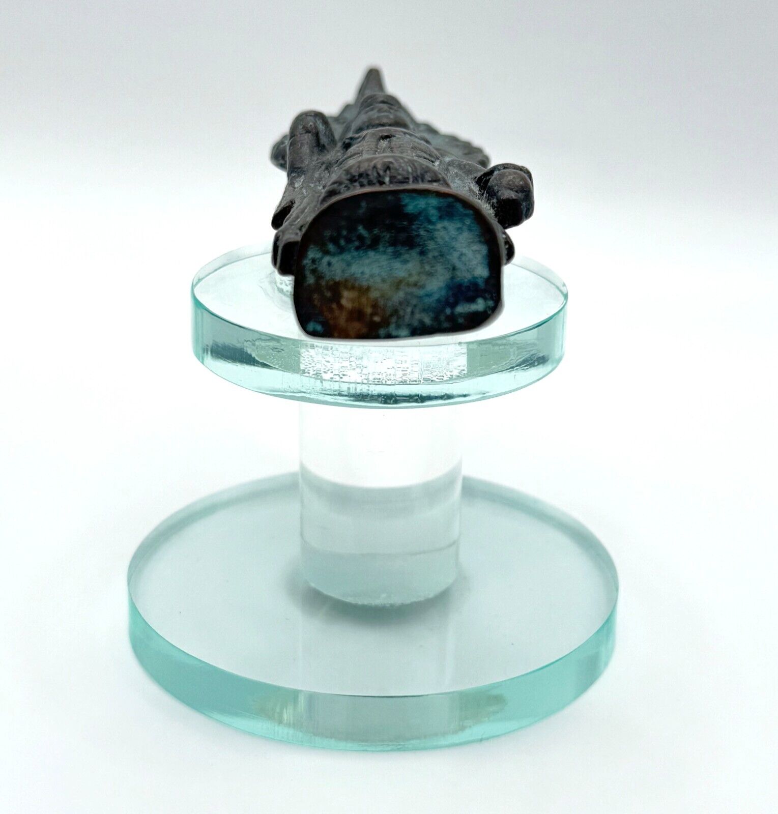 This statue came from a recent Honolulu estate. It is a fine example of an antique bronze Guanyin figue cast in loose robes with a halo and flaming mandorla. The statue is clearly an original & genuine - a lovely rustic piece. A solidly cast piece; weighty with an attractive aged patina.