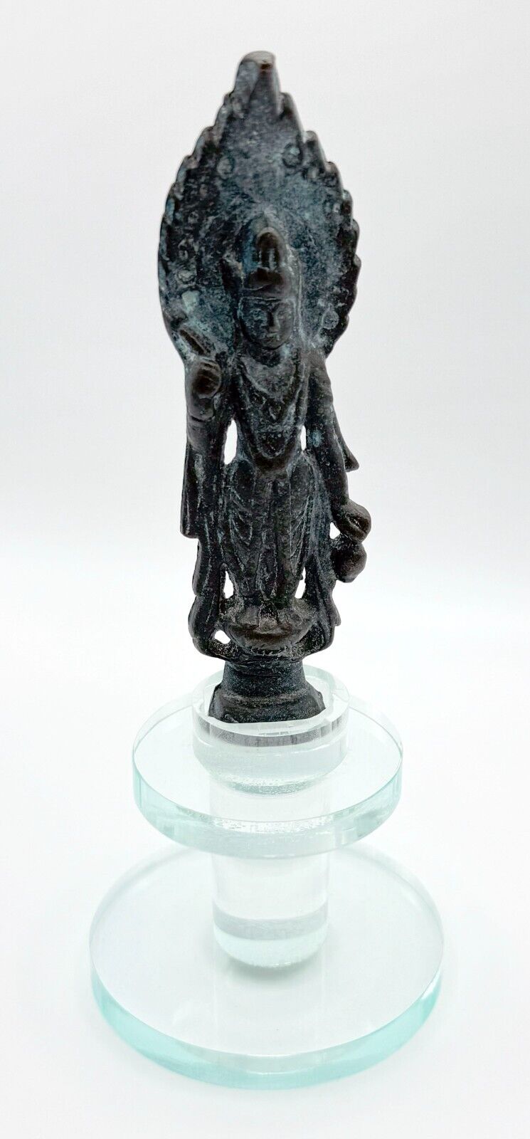 Vintage Bronze Southeast Asian Guanyin Sculpture w Flaming Mandoria (MiM)