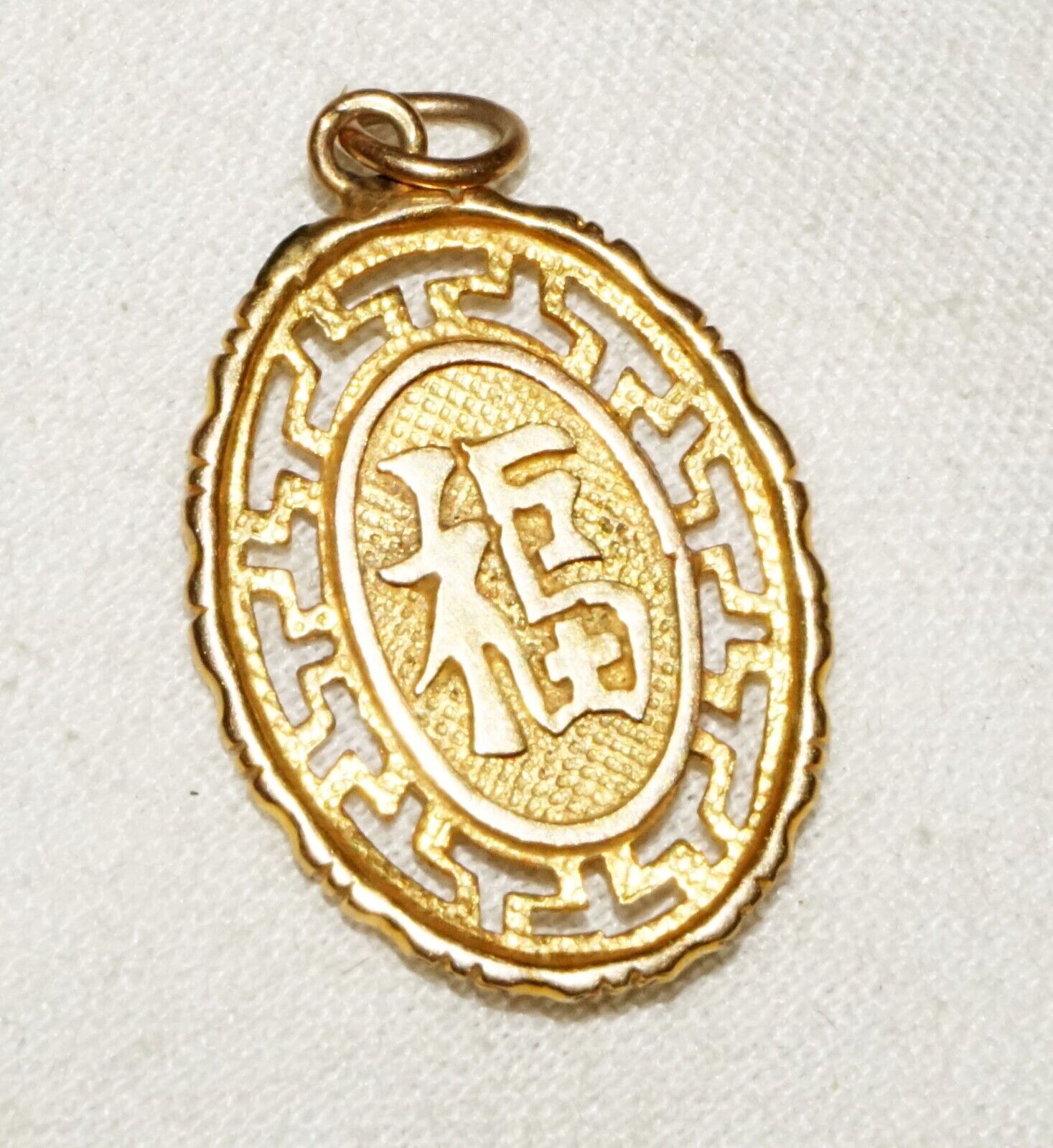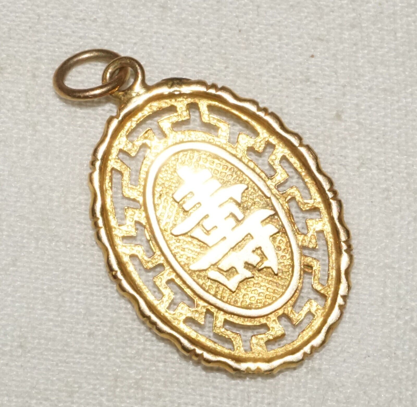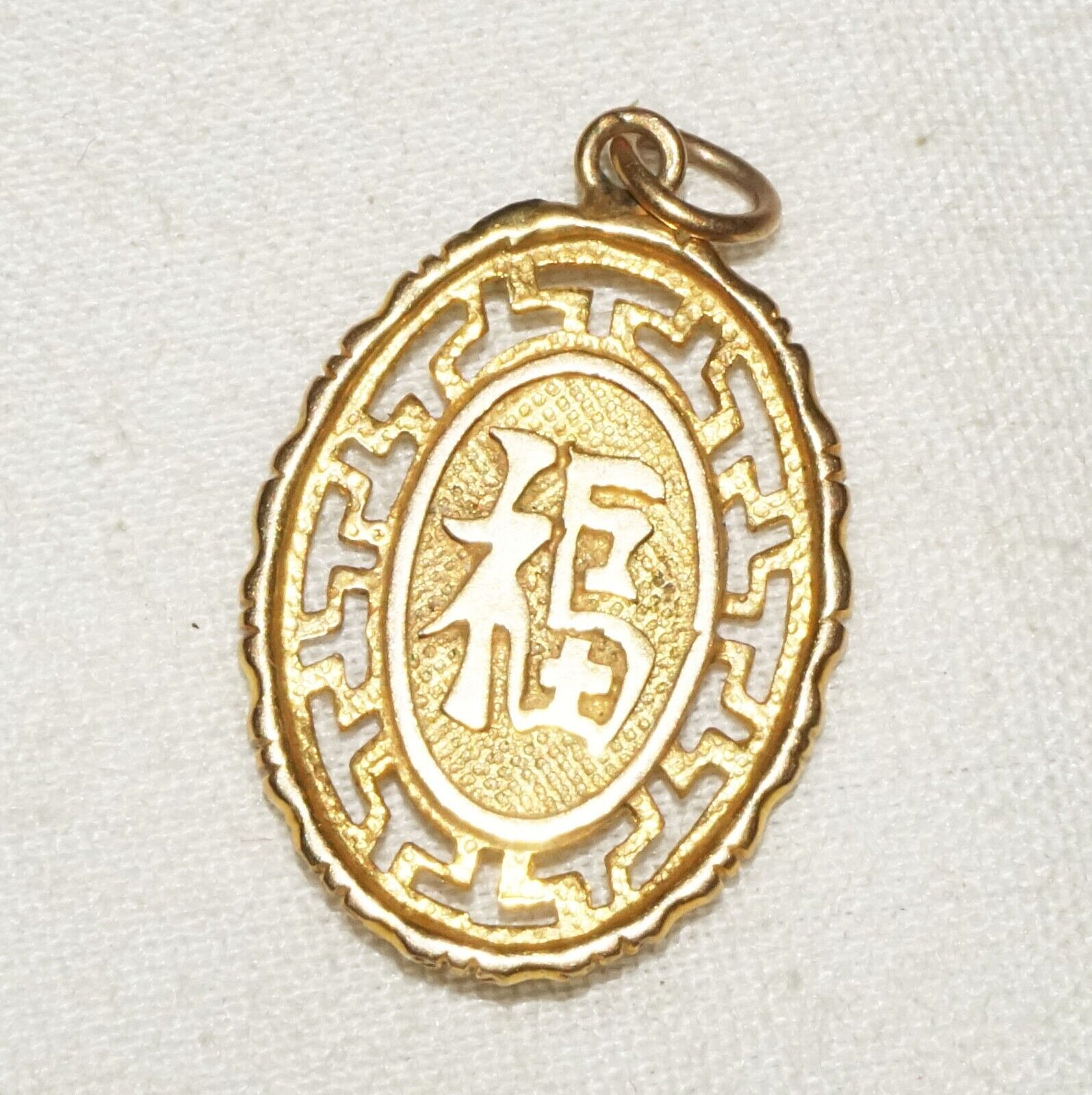 Up for sale from a recent estate in Honolulu Hawaii, this Vintage Chinese 14k yellow gold auspicious character motif oval pierced pendant. The condition is described above for more information please check the photos. Free local pick up possible!!!