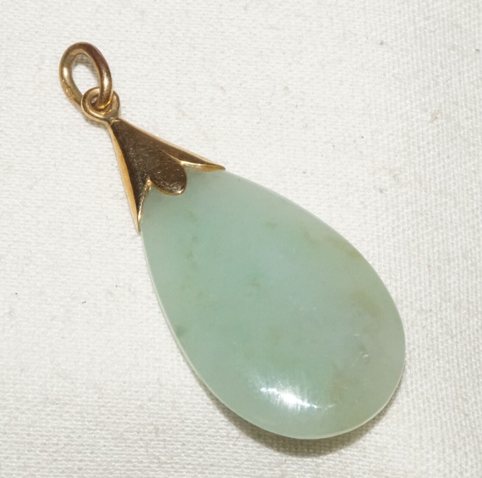 Up for sale from a recent estate in Honolulu Hawaii, this Vintage Chinese 14k yellow gold set drop shaped jadeite jade pendant. The condition is described above for more information please check the photos. Free local pick up possible!!!