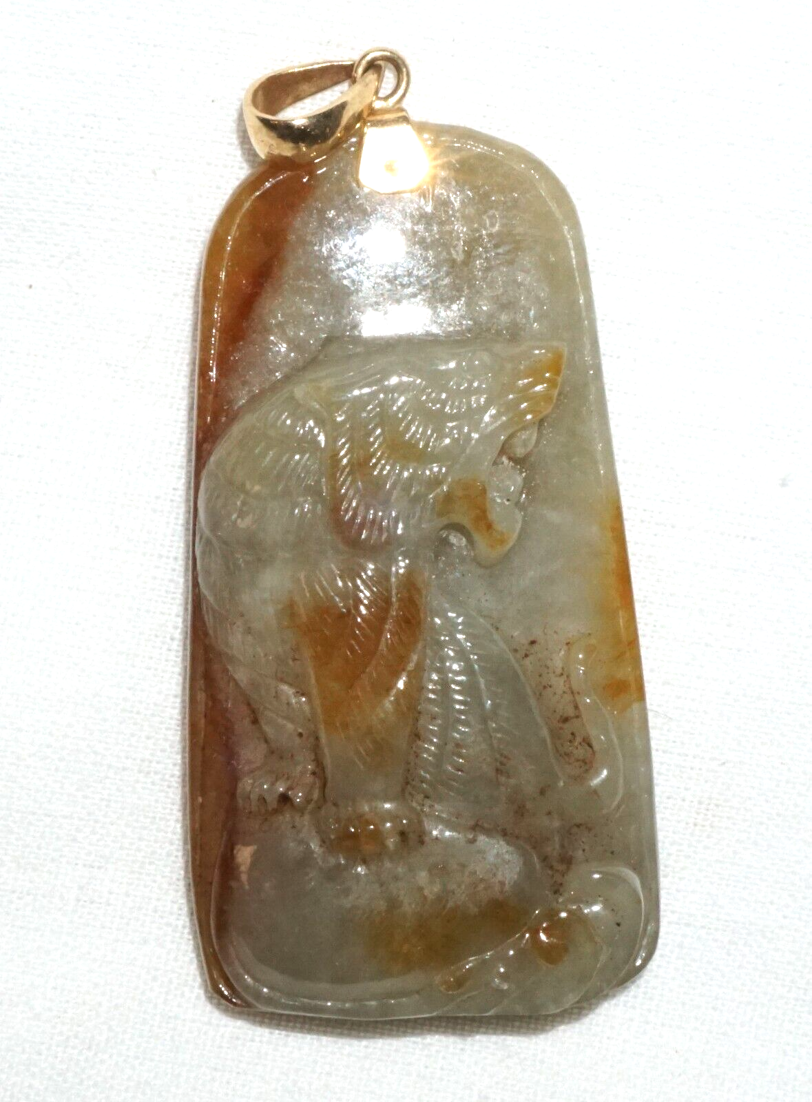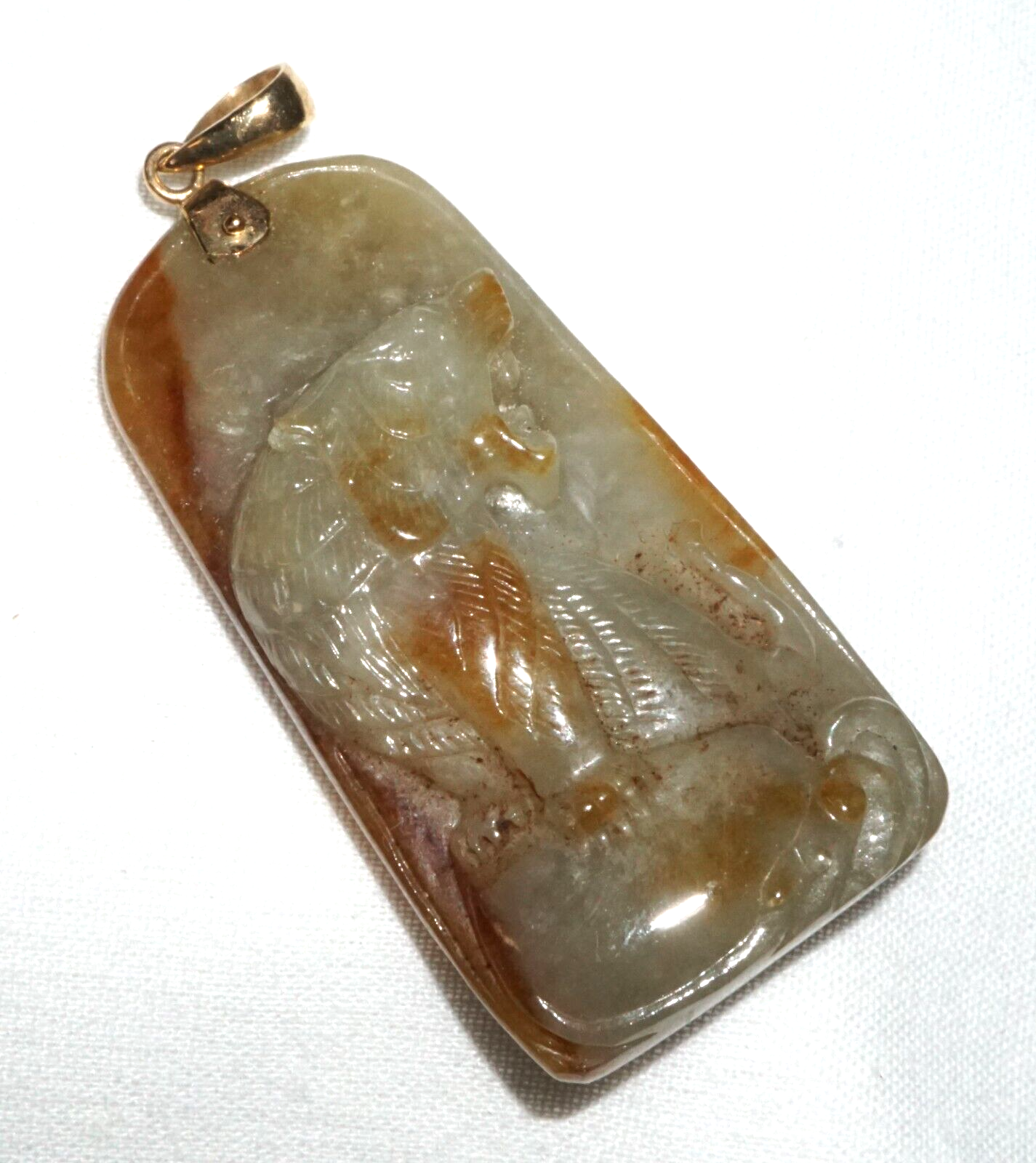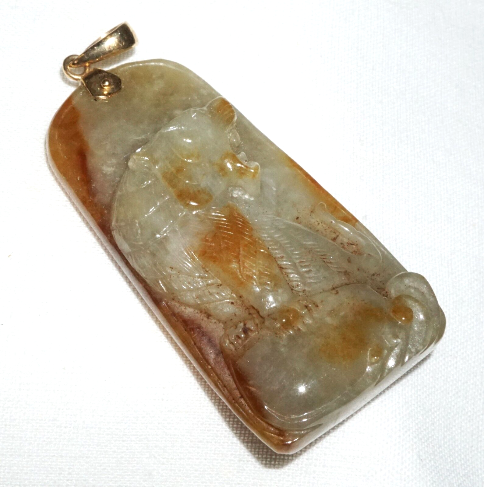 Vintage Chinese 14k Yellow Gold set Jade Pendant w. Lion Dog Motif (FeL)