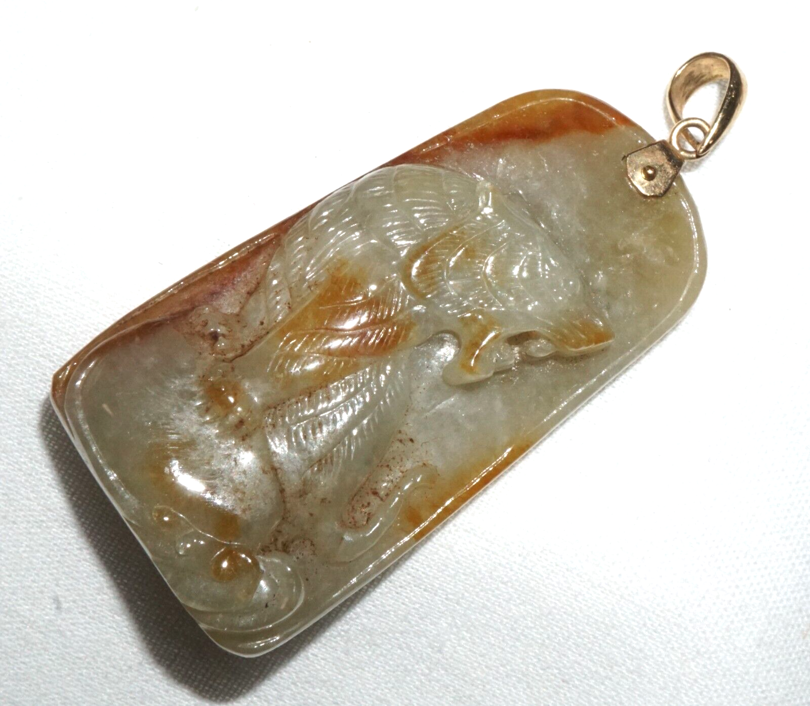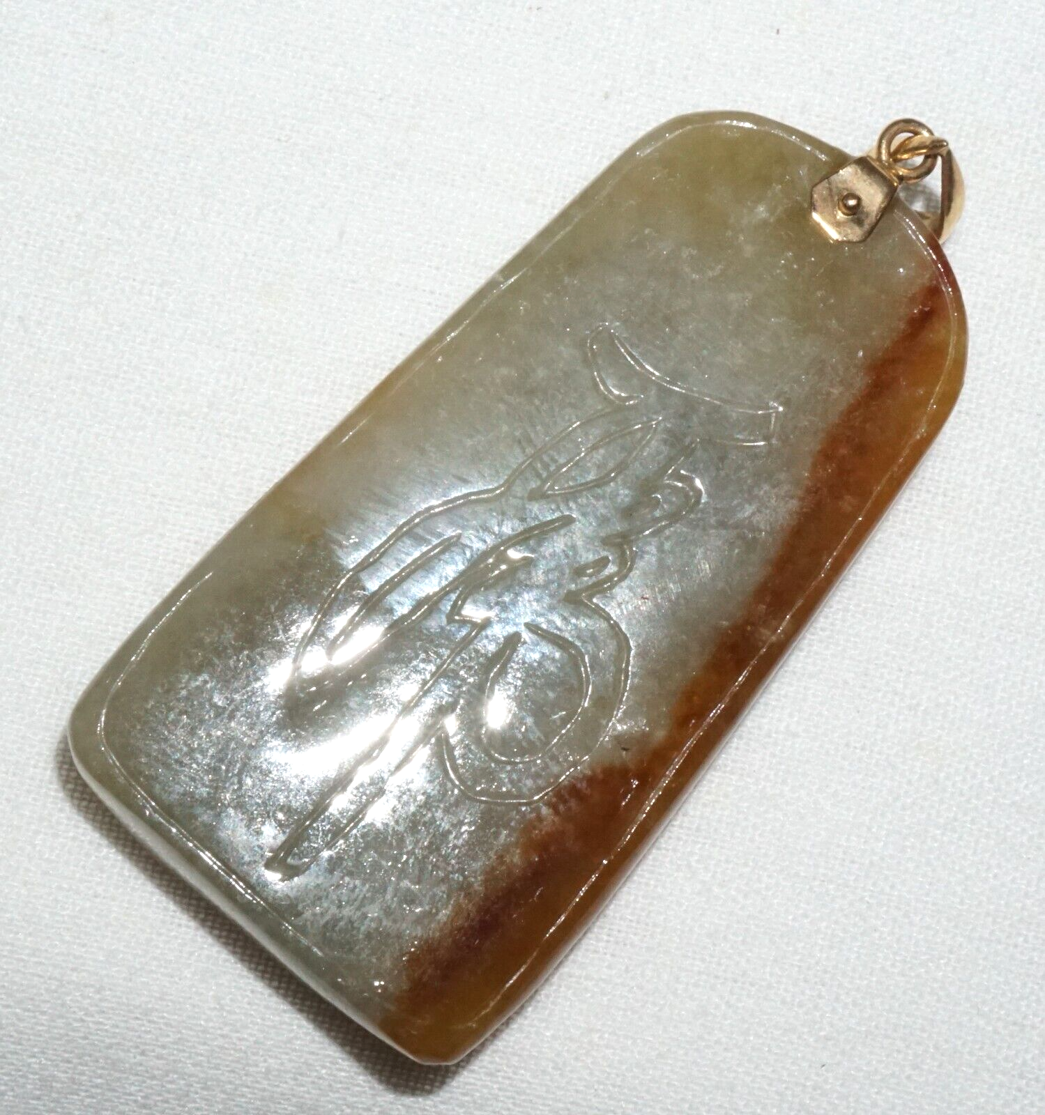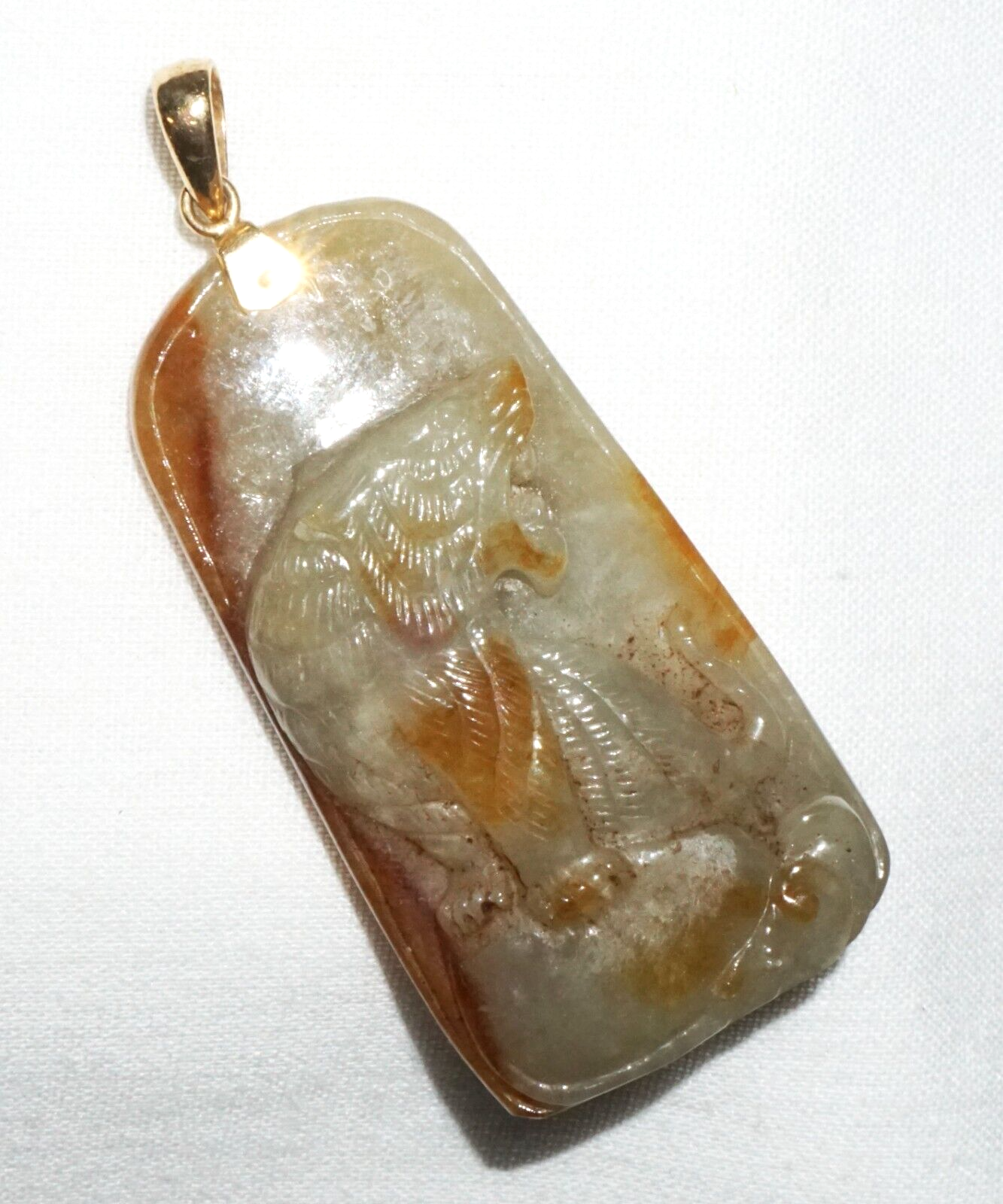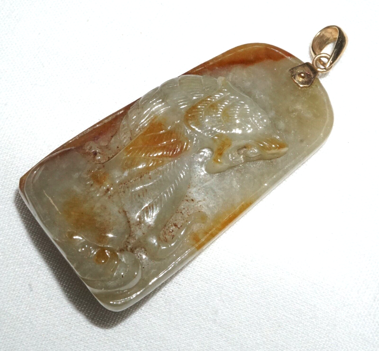 Vintage Chinese 14k Yellow Gold set Jade Pendant w. Lion Dog Motif (FeL)