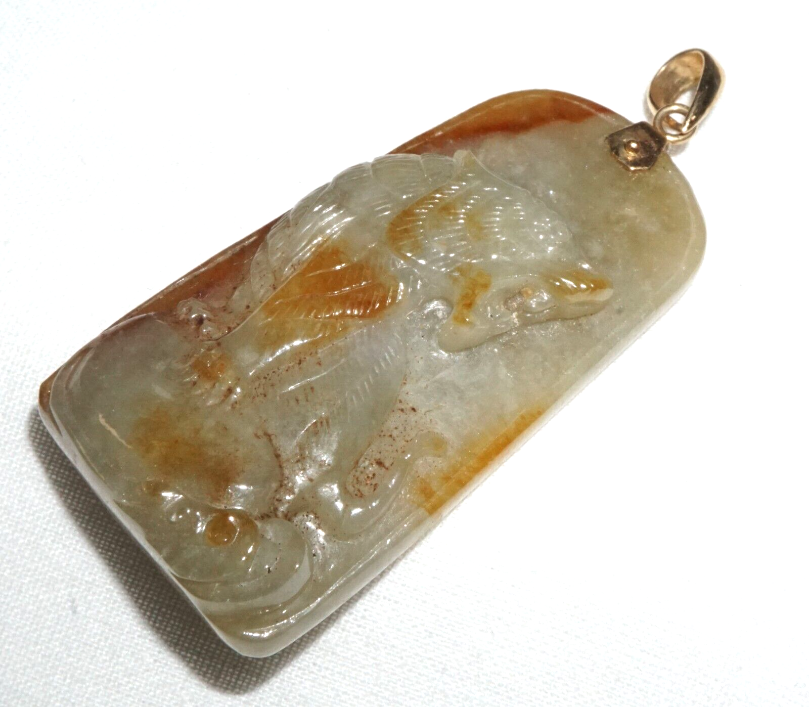 The item is in good pre-owned condition, the pendant bail is marked 14k, the stone tested jadeite jade, we are unable to say if it was enhanced in any way