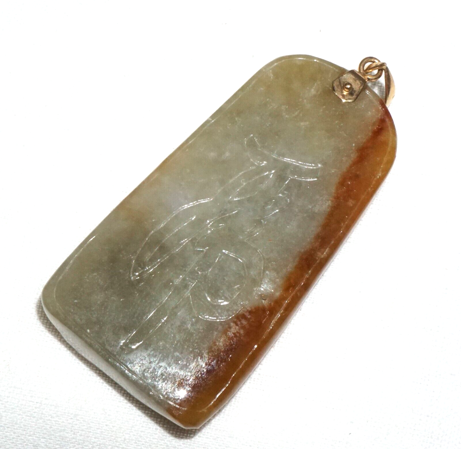Up for sale from a recent estate in Honolulu Hawaii, this Vintage Chinese 14k yellow gold set green and brown jade carved pendant with a seated lion dog and character motif. The condition is described above for more information please check the photos. Free local pick up possible!!!