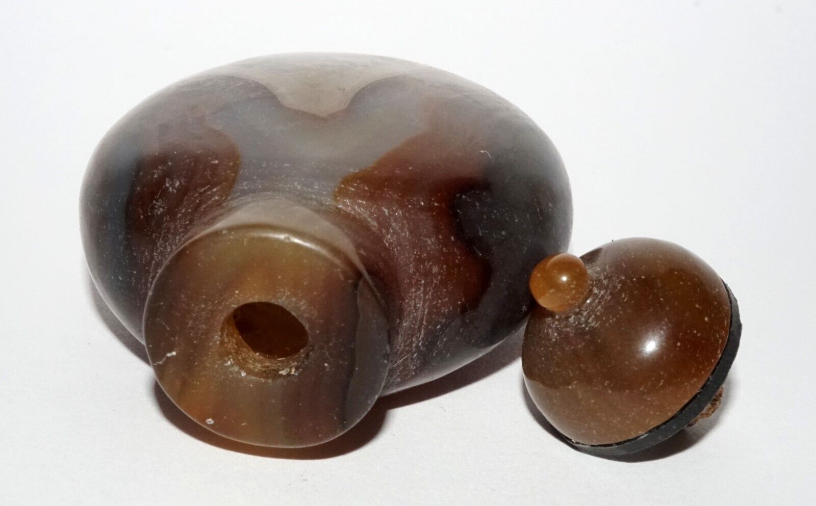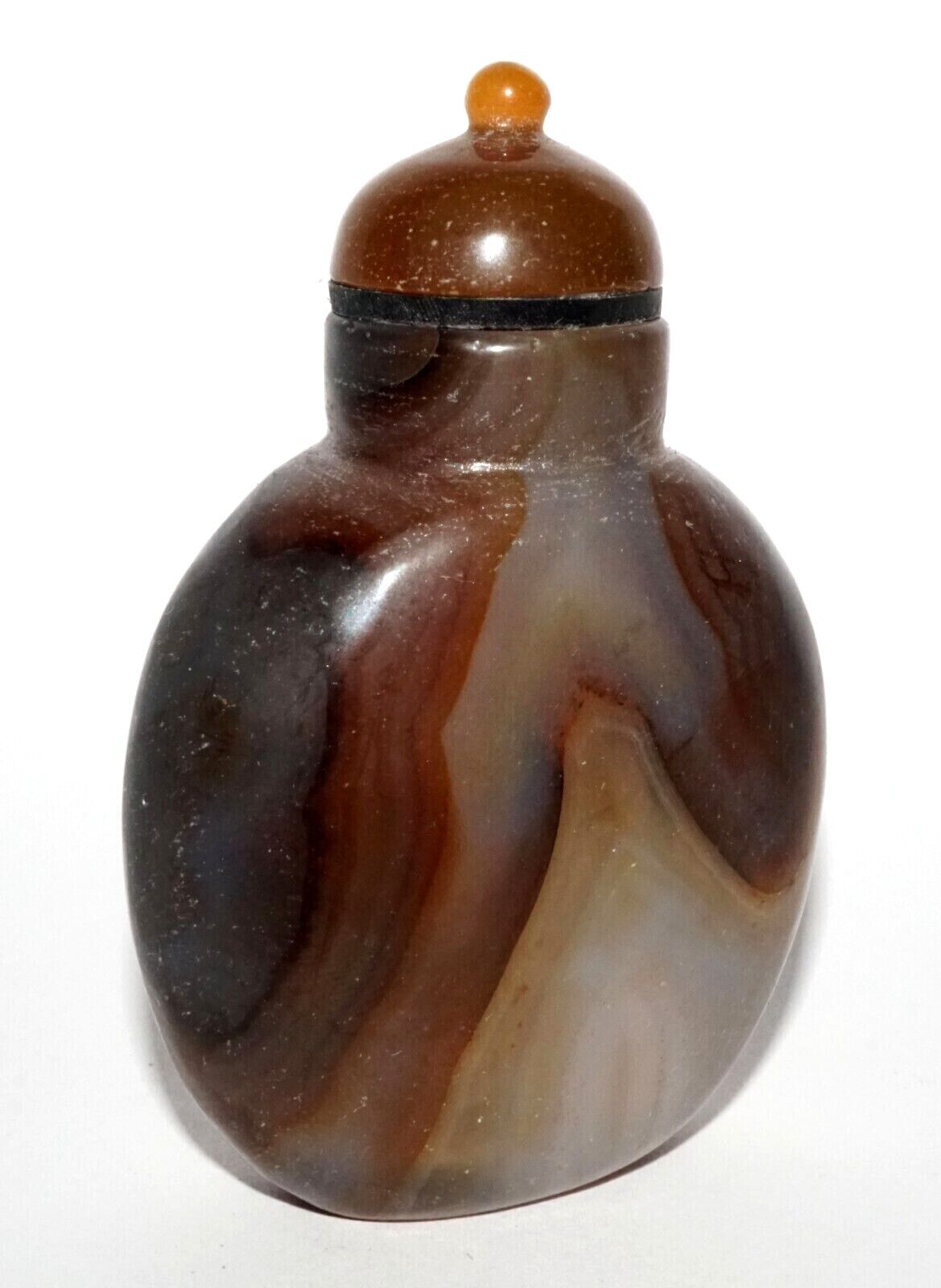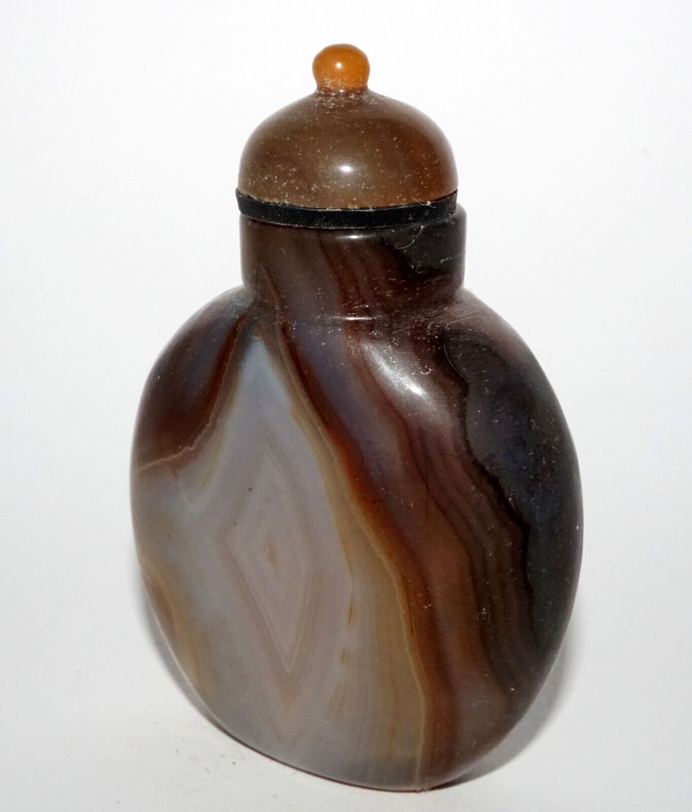 Vintage Chinese Banded Shadow Agate Snuff Bottle & Agate Stopper (LeS) G16