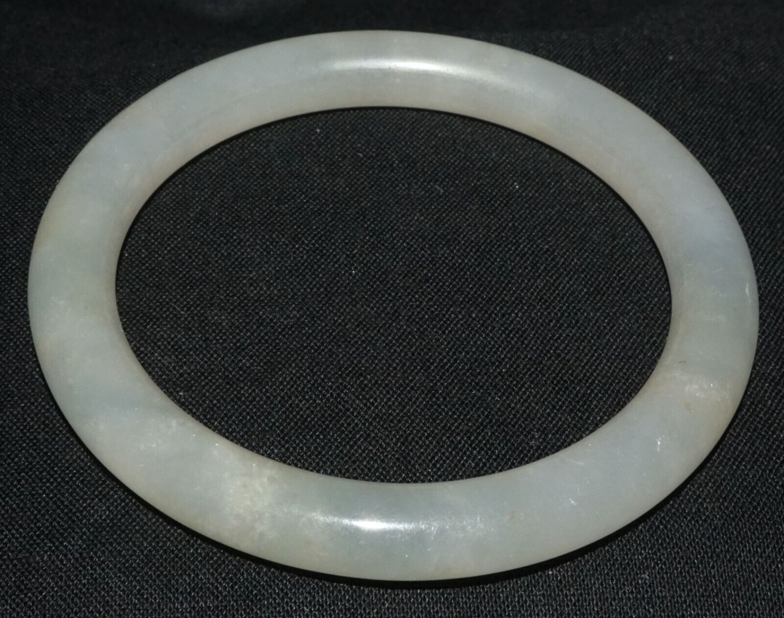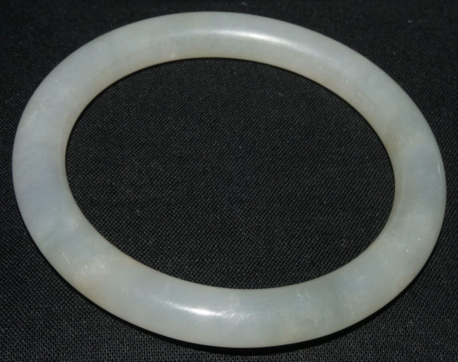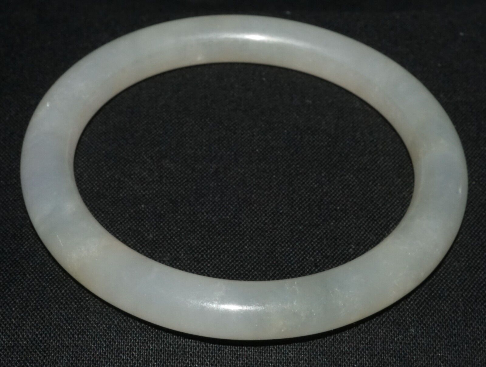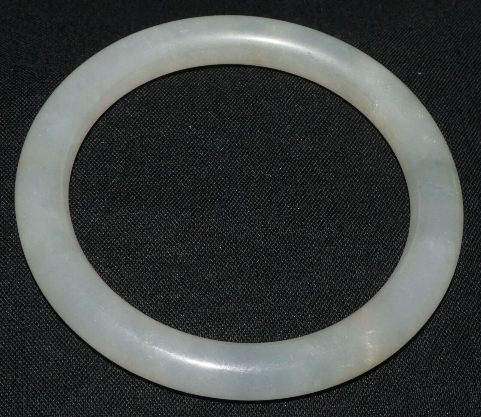 Up for sale from a recent estate in Honolulu Hawaii, this Vintage Chinese pale grayish green or off-white jadeite jade bangle bracelet with plain design. The condition is described above for more information please check the photos. Free local pick up possible!!!