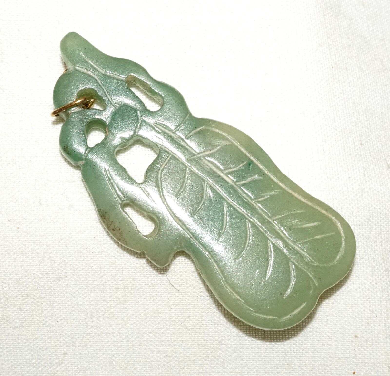 Vintage Chinese Green Jadeite Jade Peach & Leaf Motif Pendant (LeS)L24