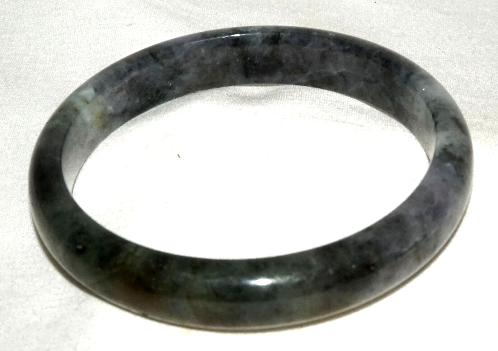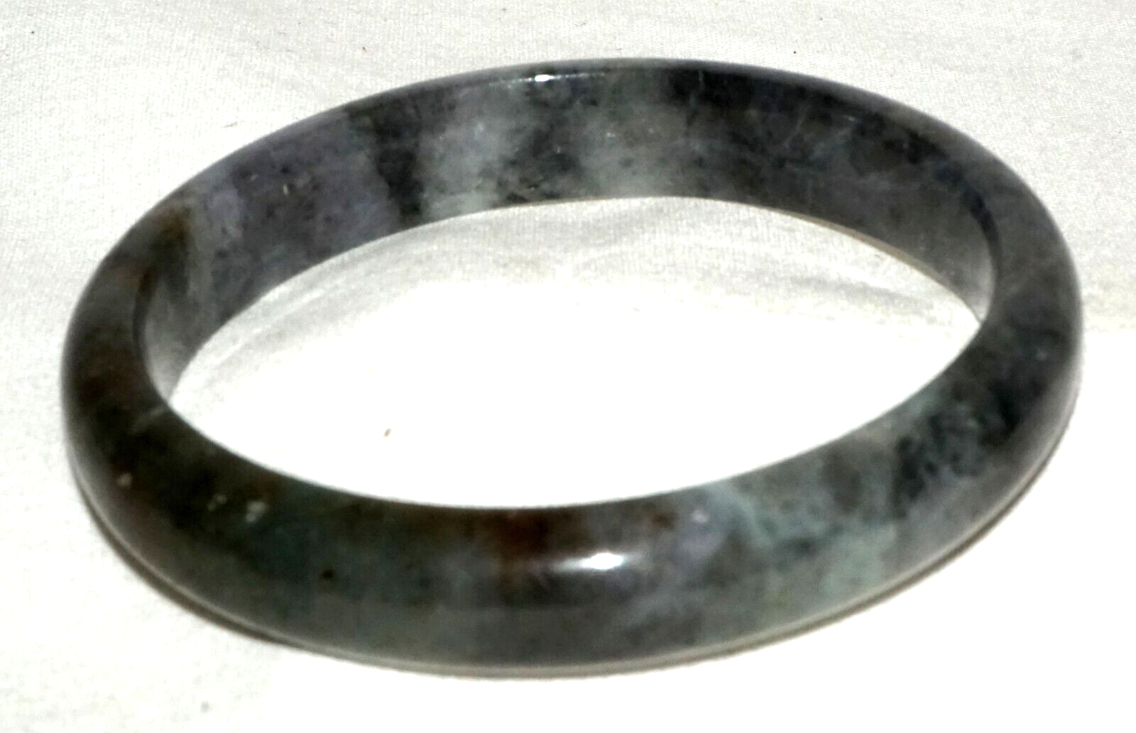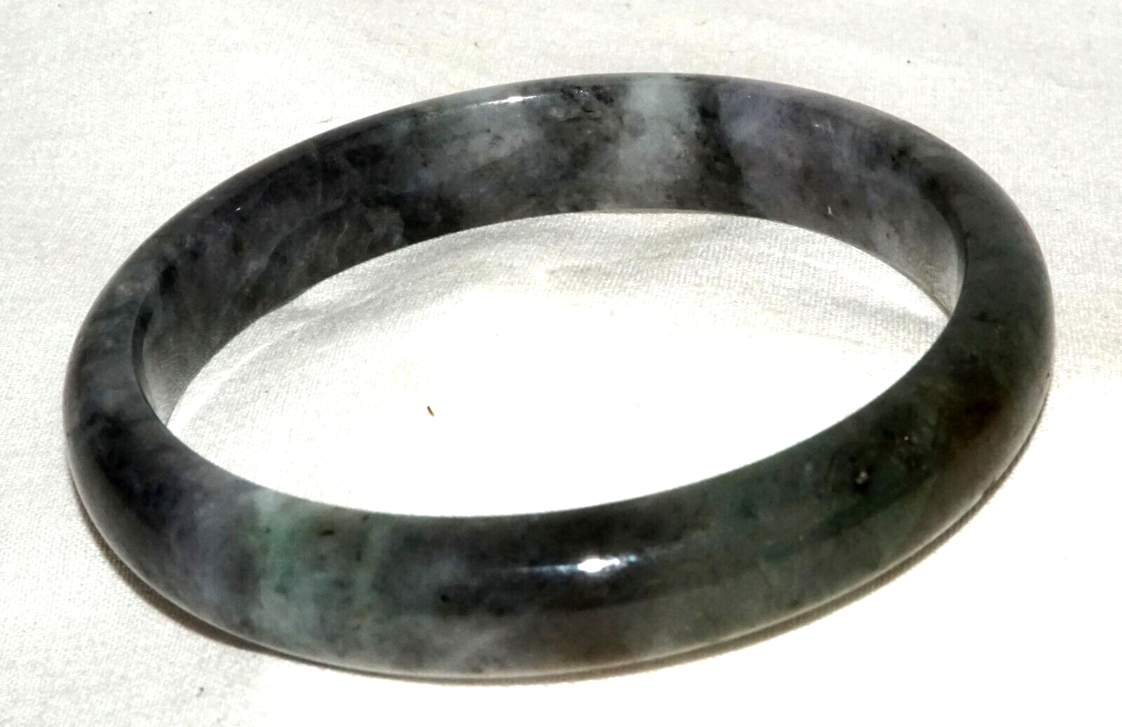Vintage Chinese Grey & Dark Green Jadeite Jade Bangle Bracelet (InS)#L3