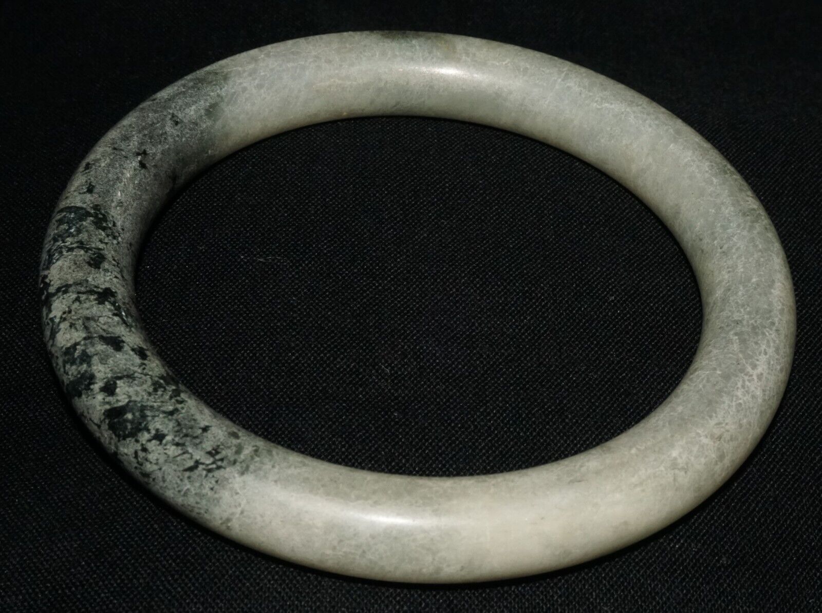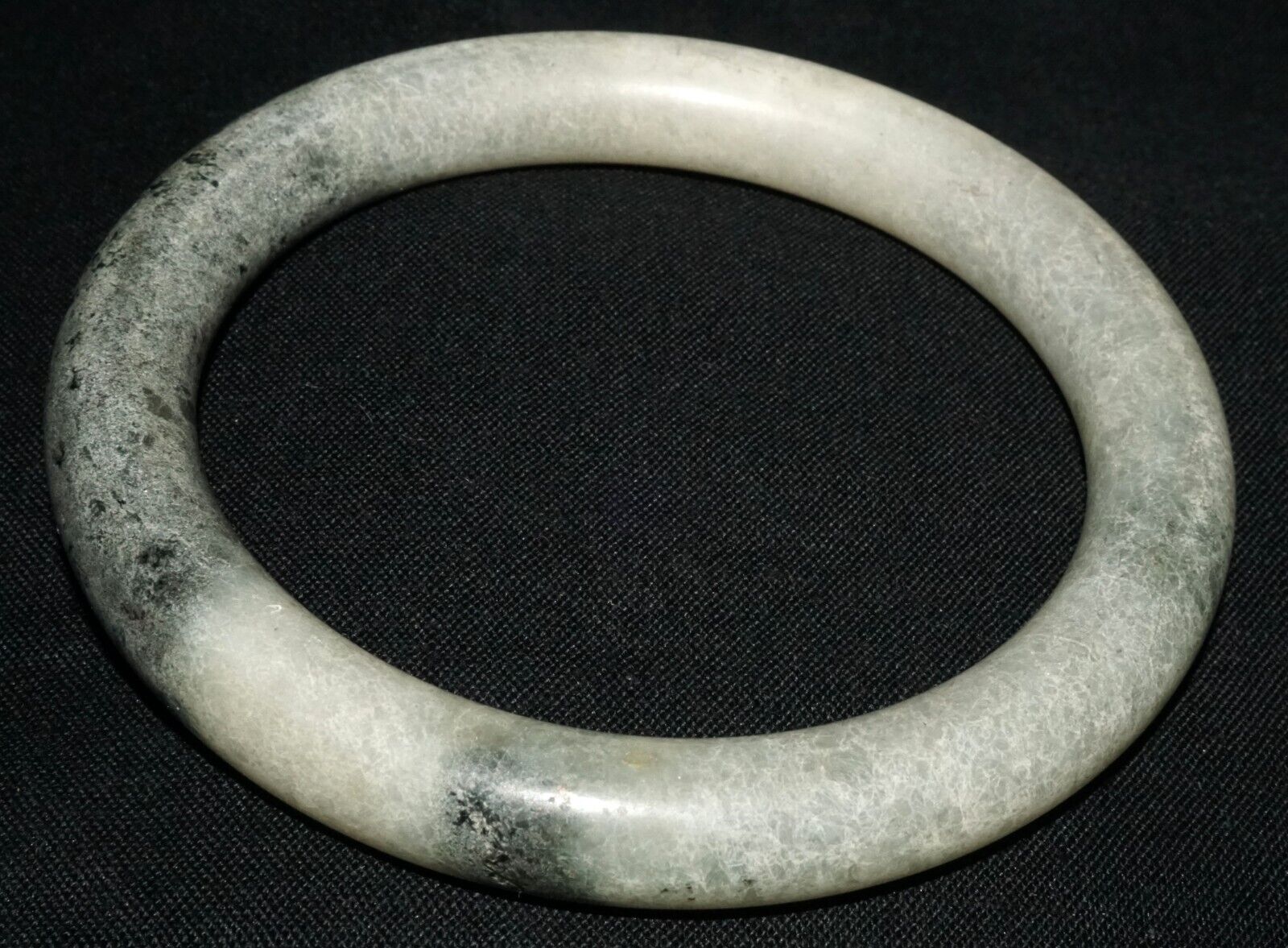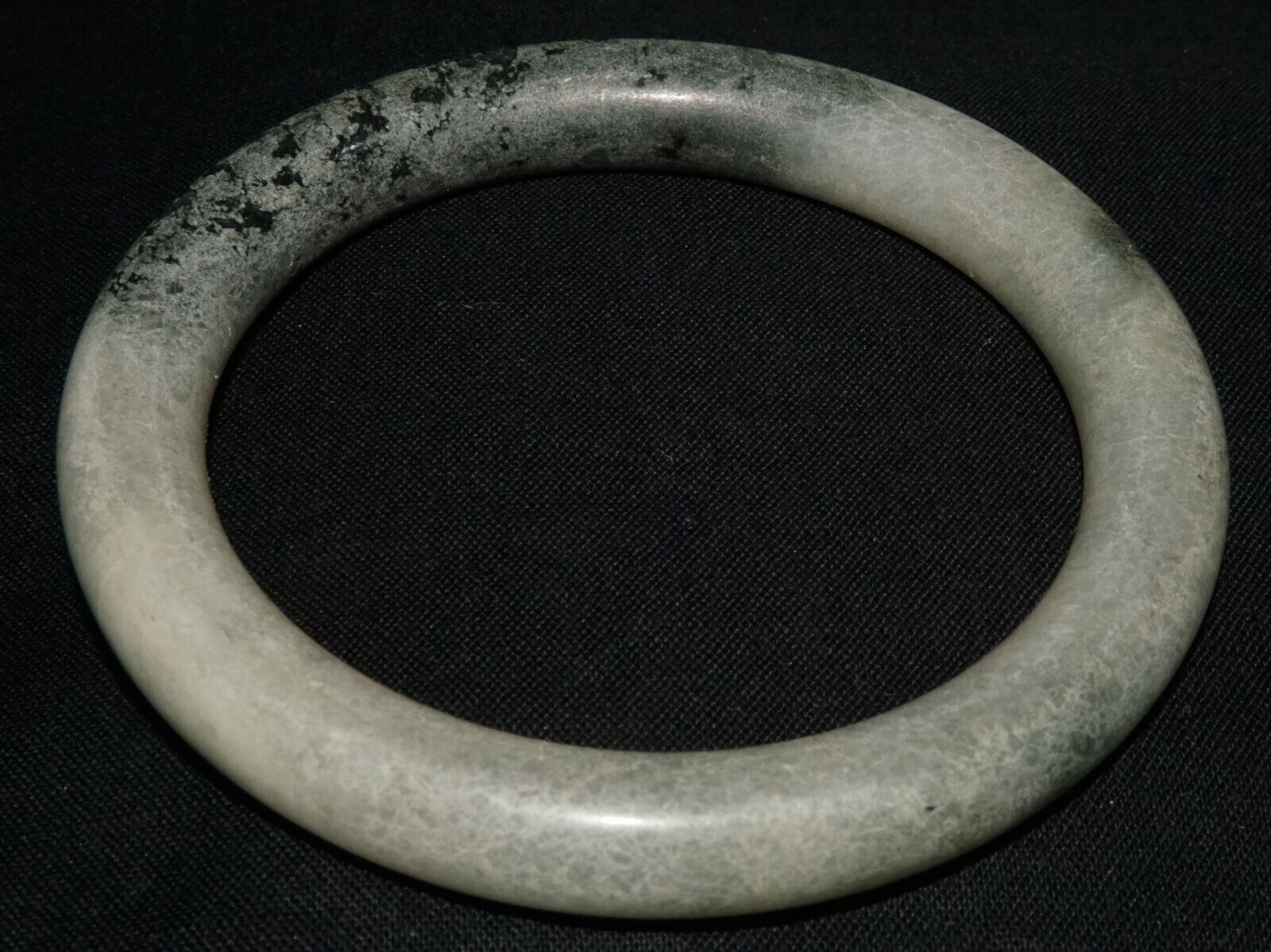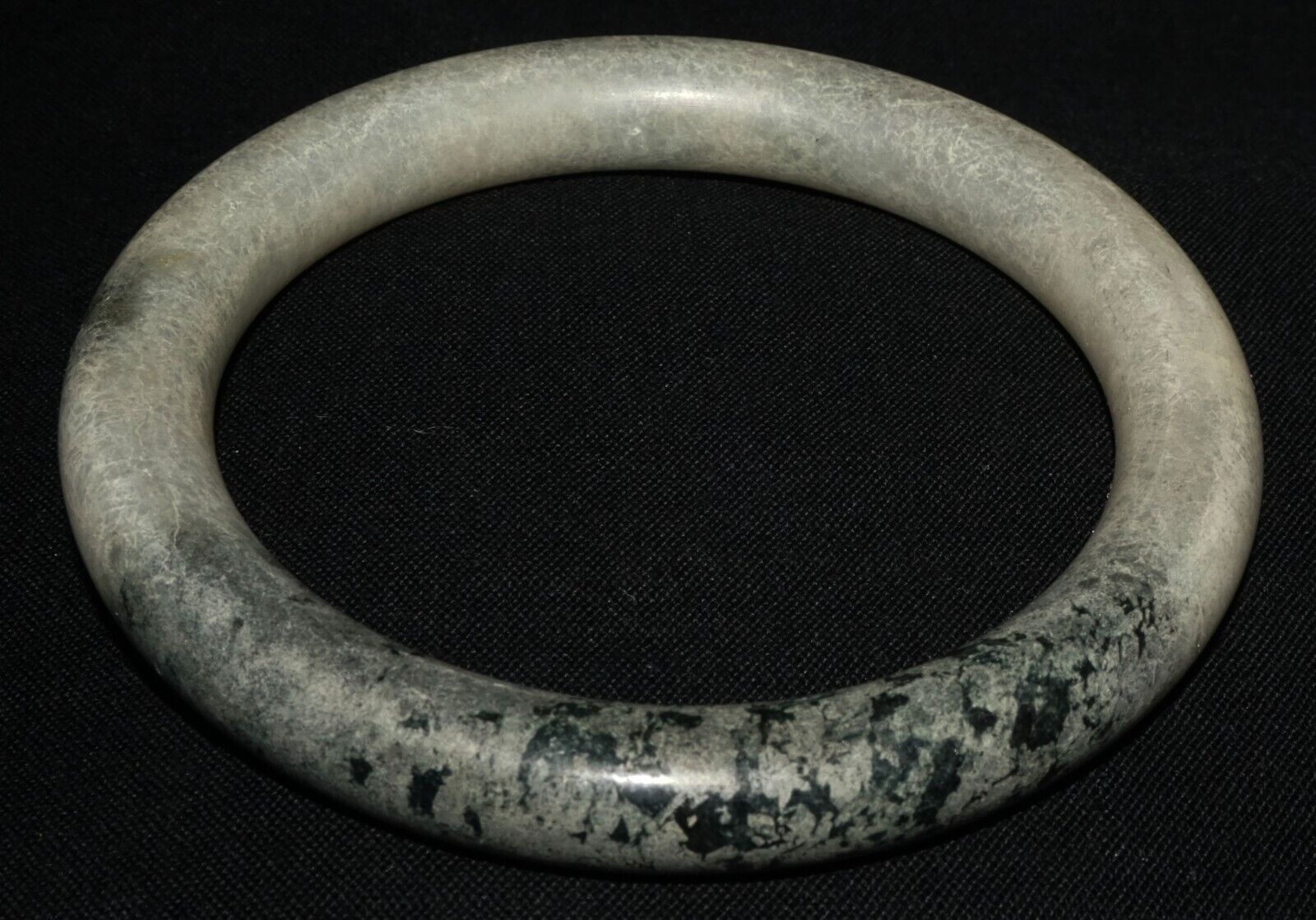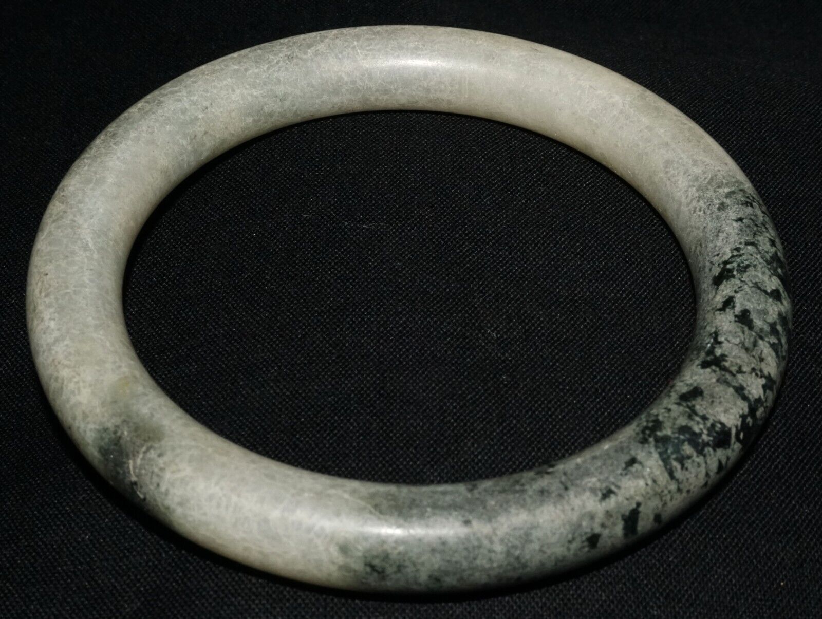 Vintage Chinese Grey Mottled Black Nephrite Jade Bangle Bracelet (LeS) B32
