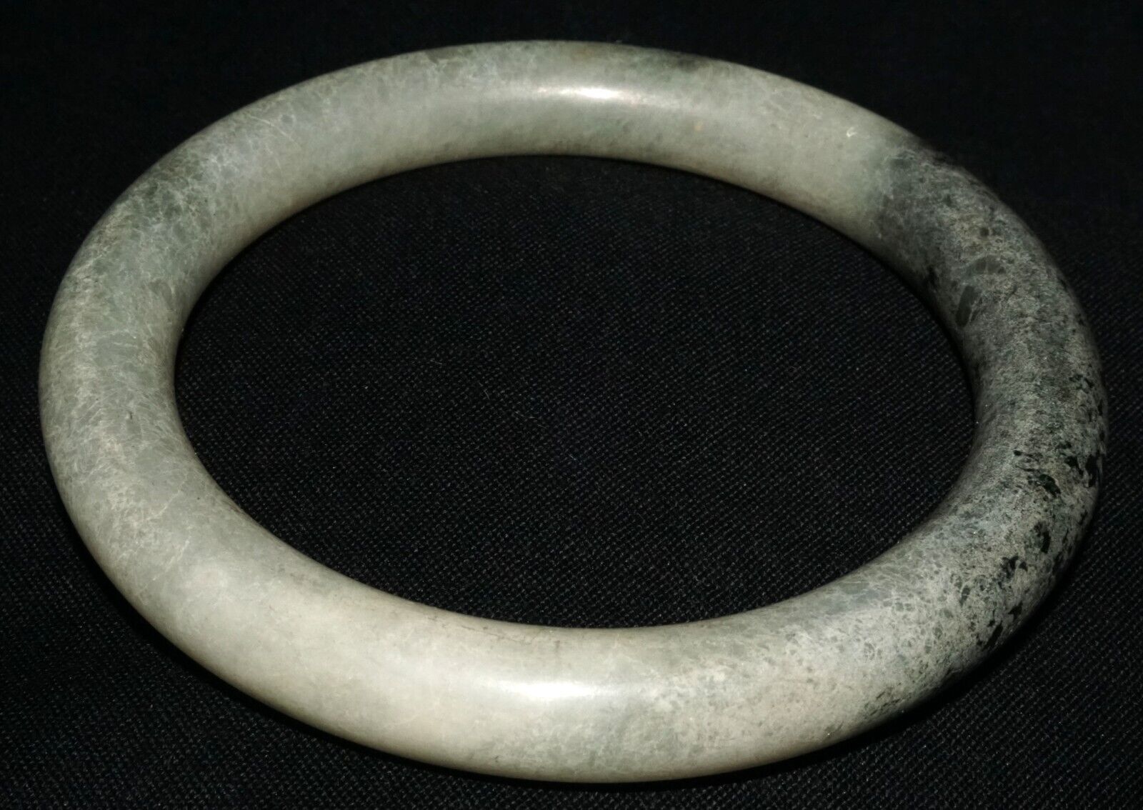 Up for sale from a recent estate in Honolulu Hawaii, this Vintage Chinese grey and mottled black nephrite jade bangle bracelet with plain design. The condition is described above for more information please check the photos. Free local pick up possible!!!