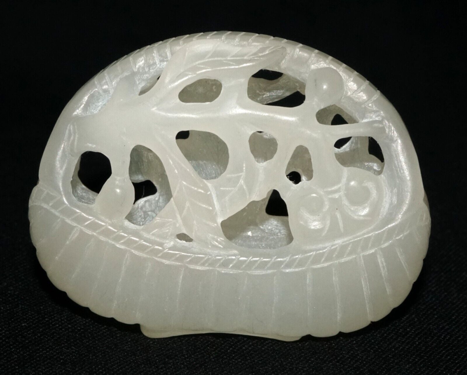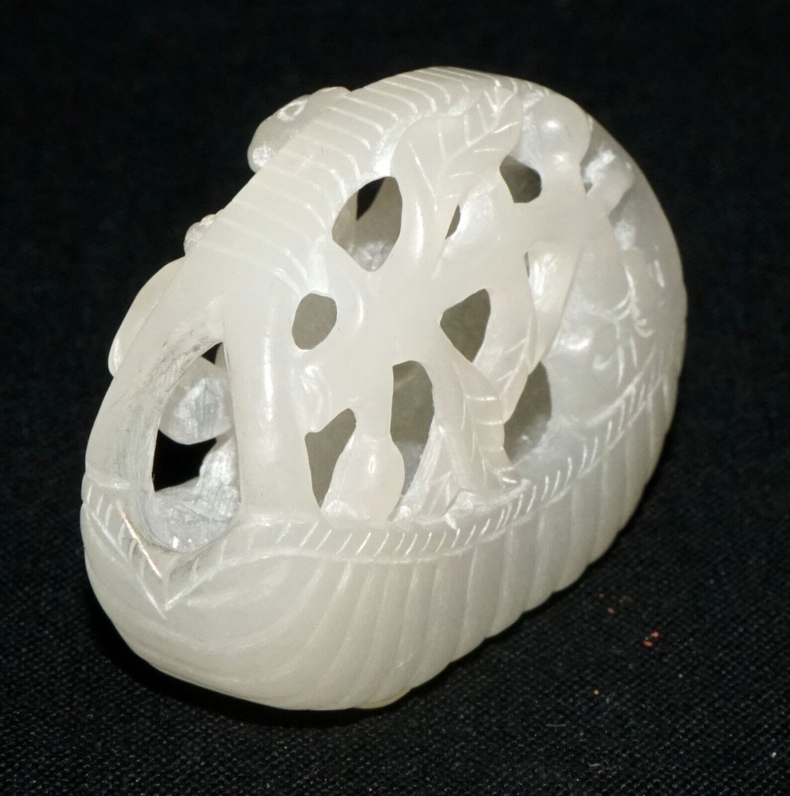 Up for sale from a recent estate in Honolulu Hawaii, this first of two Vintage Chinese white nephrite jade hollowed and pierced basket motif carved bead or pendant. The condition is described above for more information please check the photos. Free local pick up possible!!!