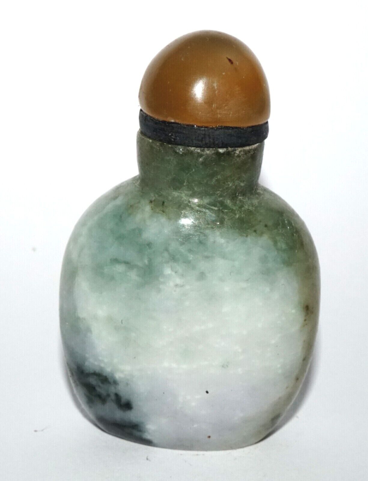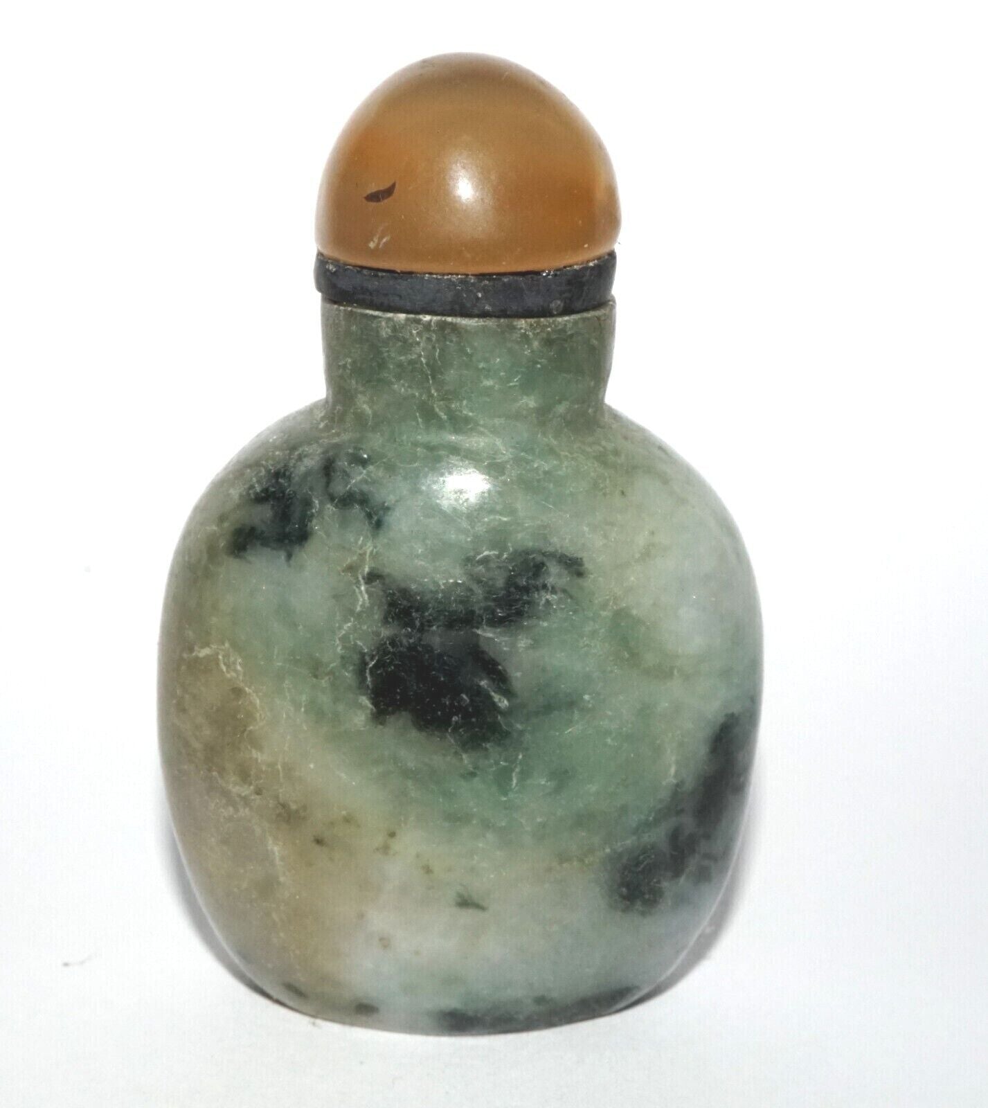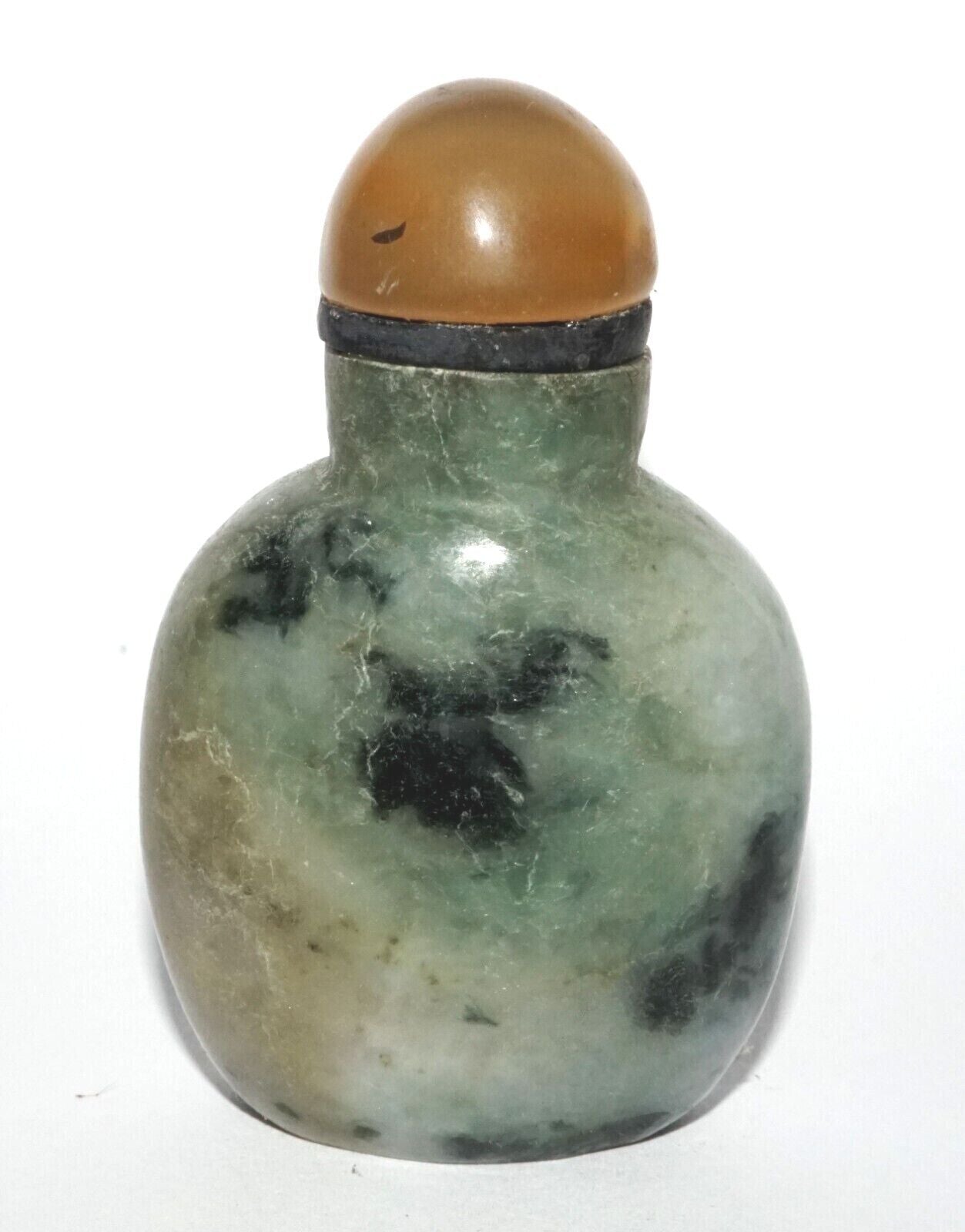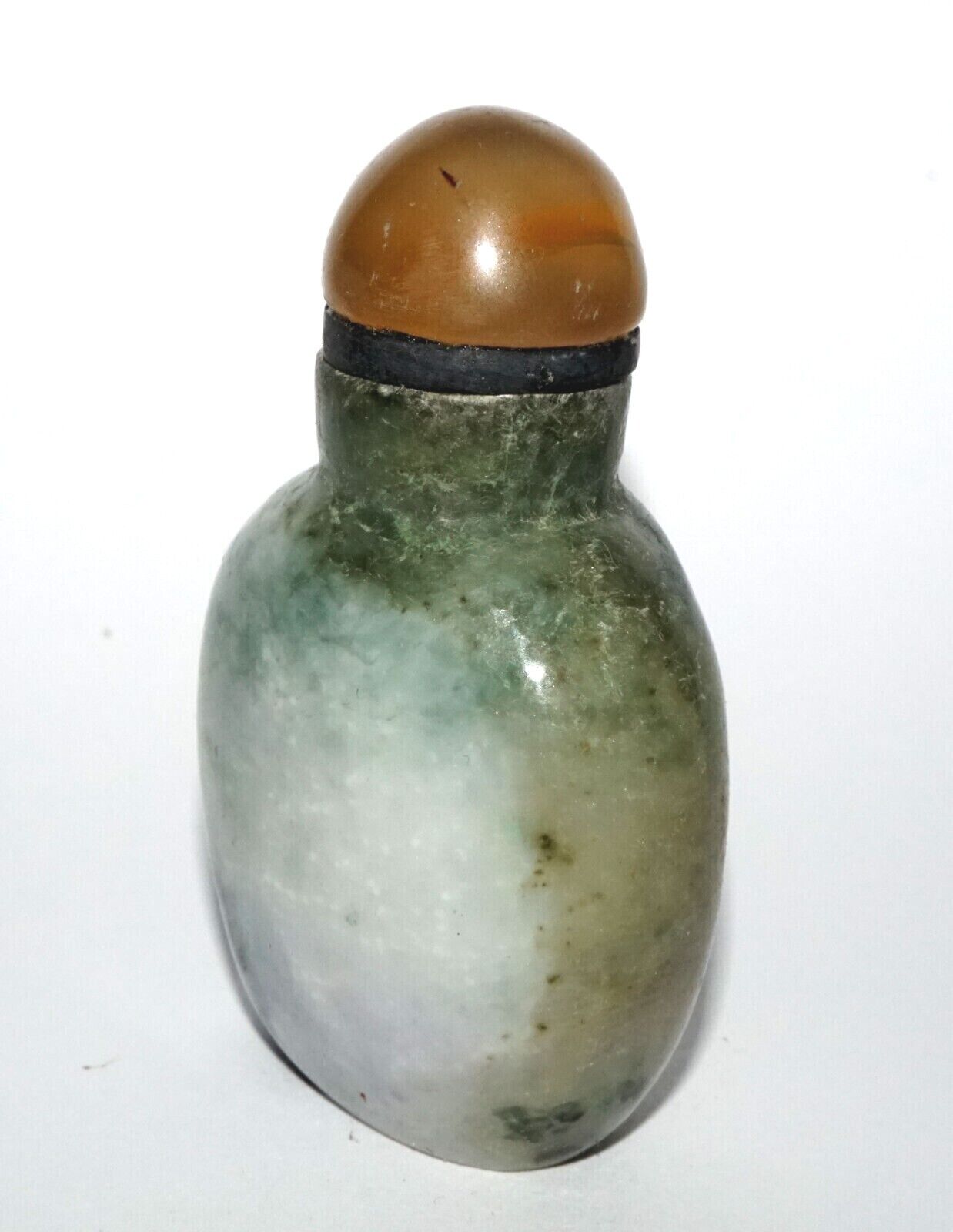 Vintage Chinese Jadeite Jade Carved Snuff Bottle w. Agate Stopper (LeS) G12