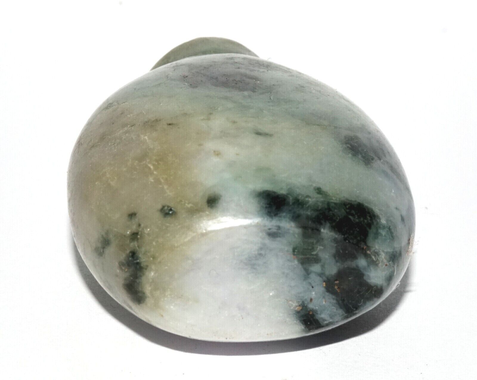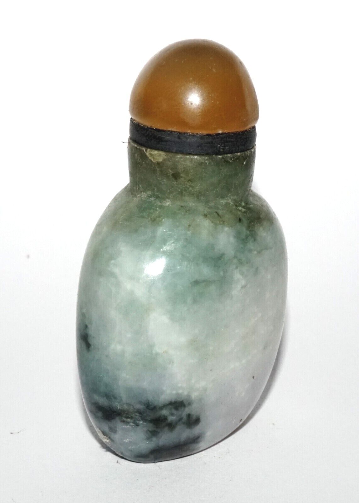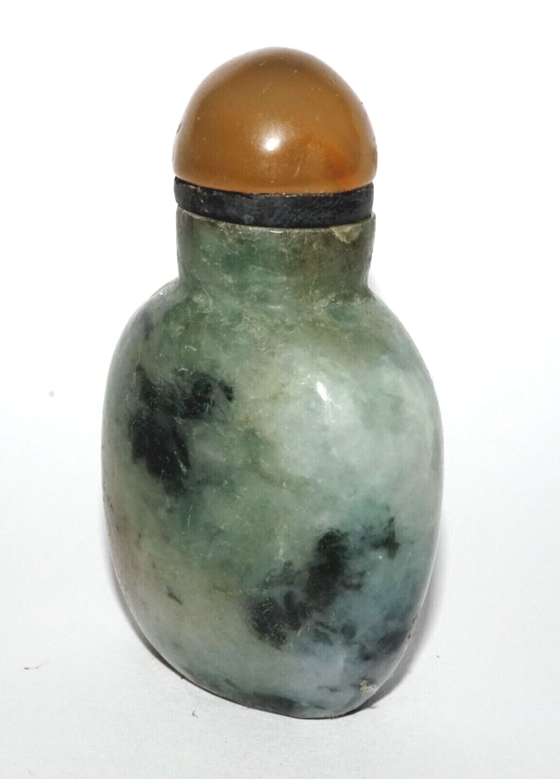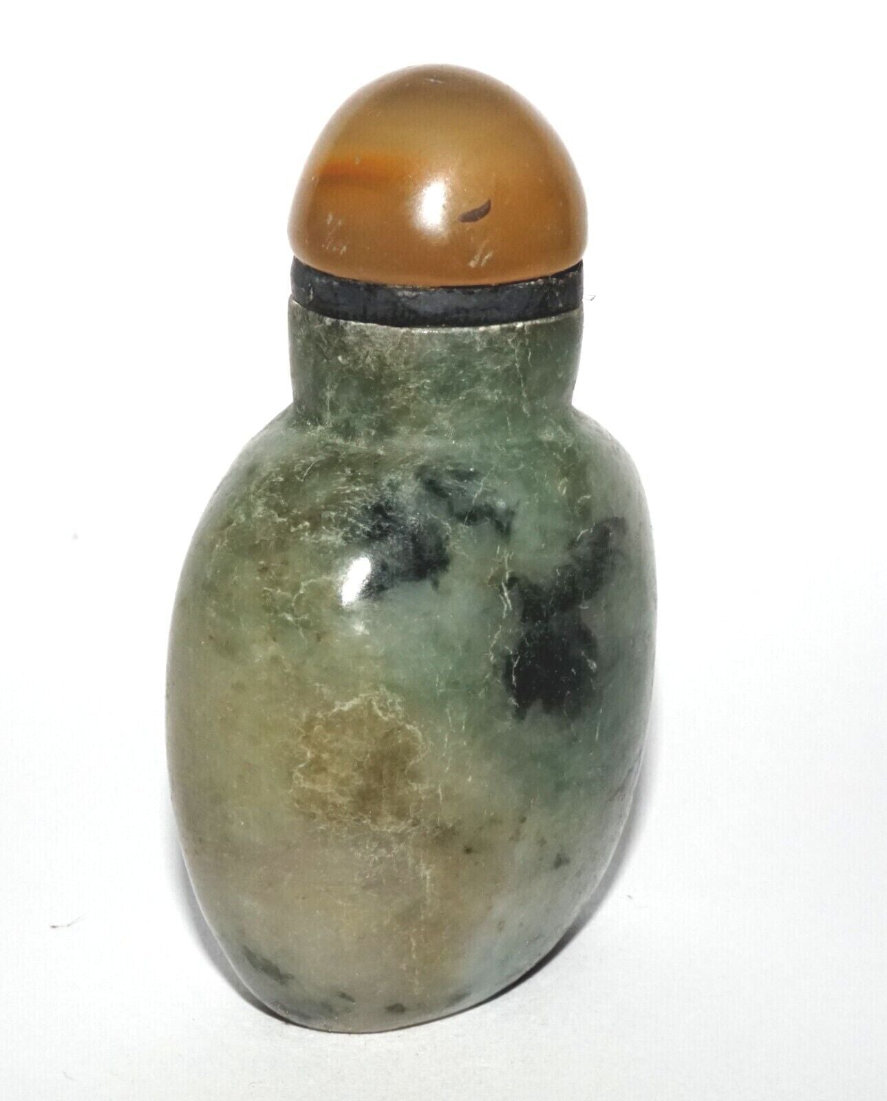Vintage Chinese Jadeite Jade Carved Snuff Bottle w. Agate Stopper (LeS) G12
