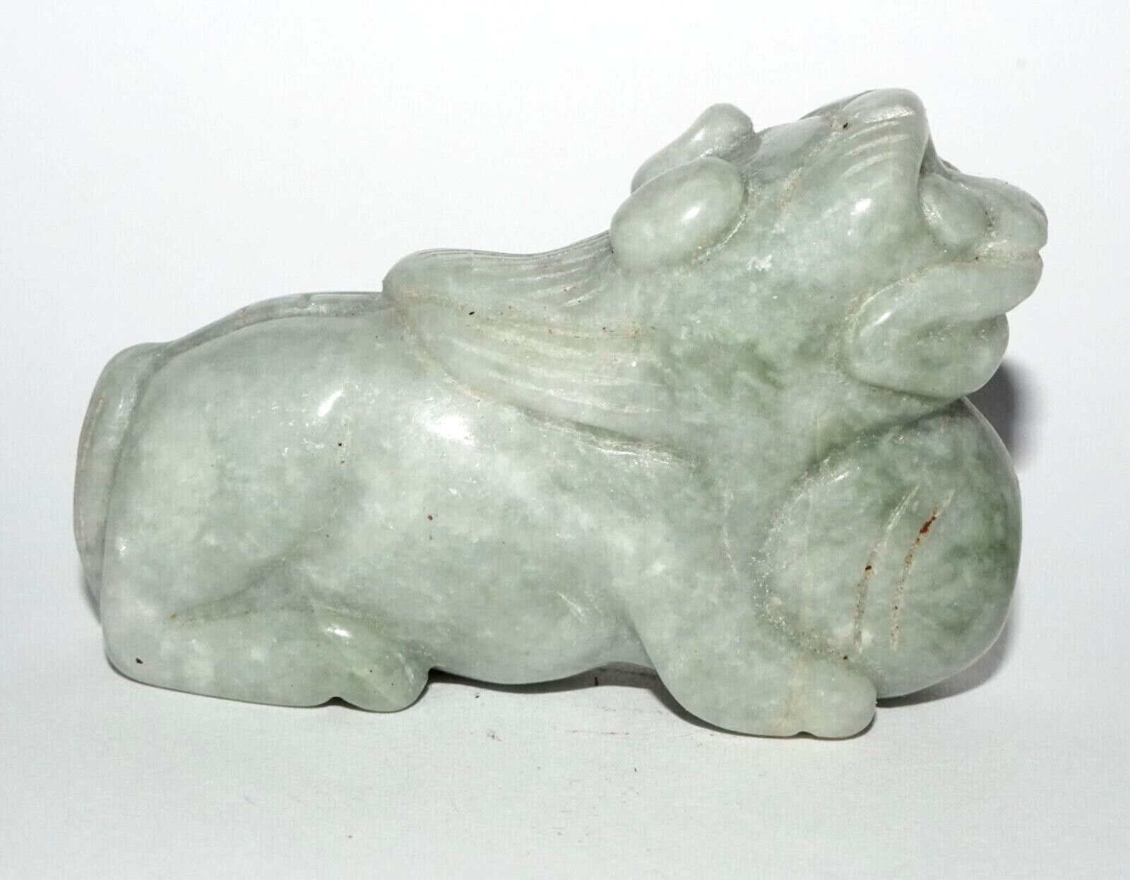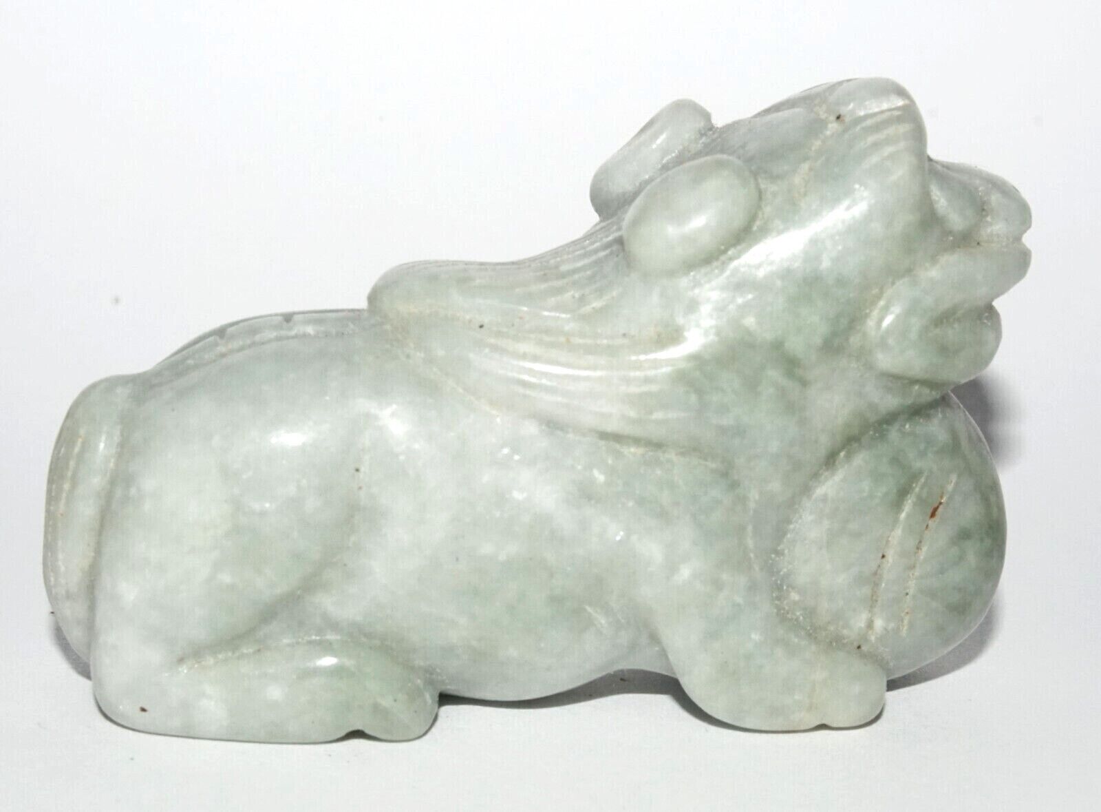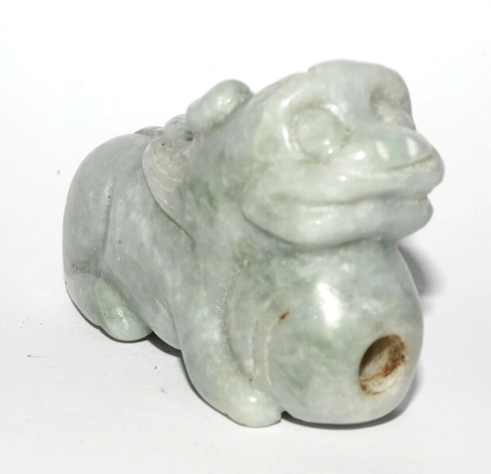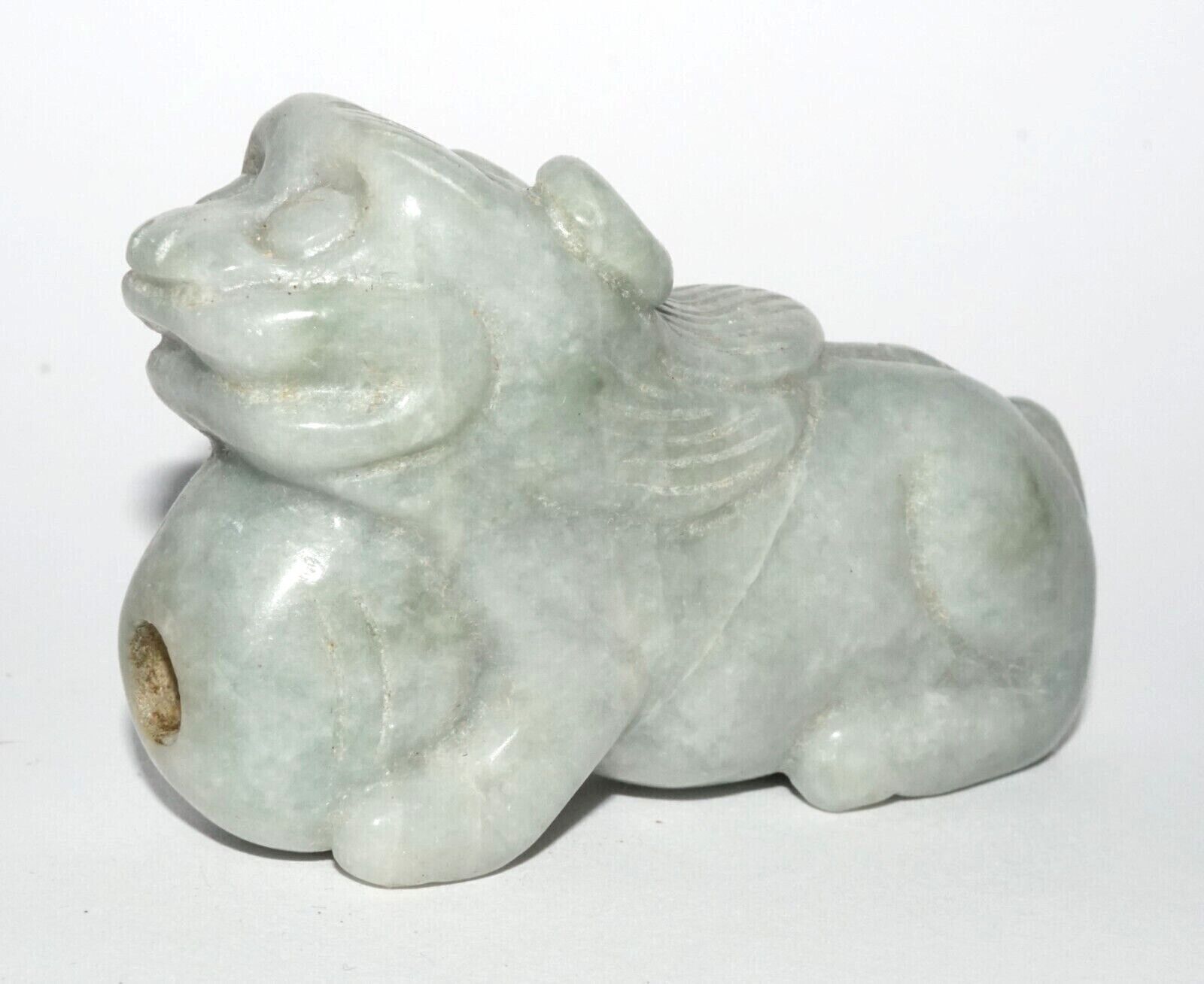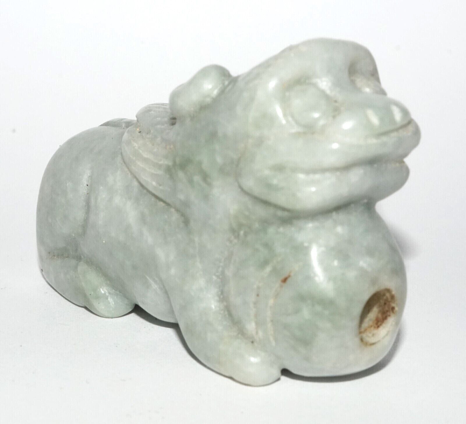 Up for sale from a recent estate in Honolulu Hawaii, this Vintage Chinese grey greenish white jadeite jade carved snuff bottle with a reclining foo dog resting his head on a ball motif. The condition is described above for more information please check the photos. Free local pick up possible!!!