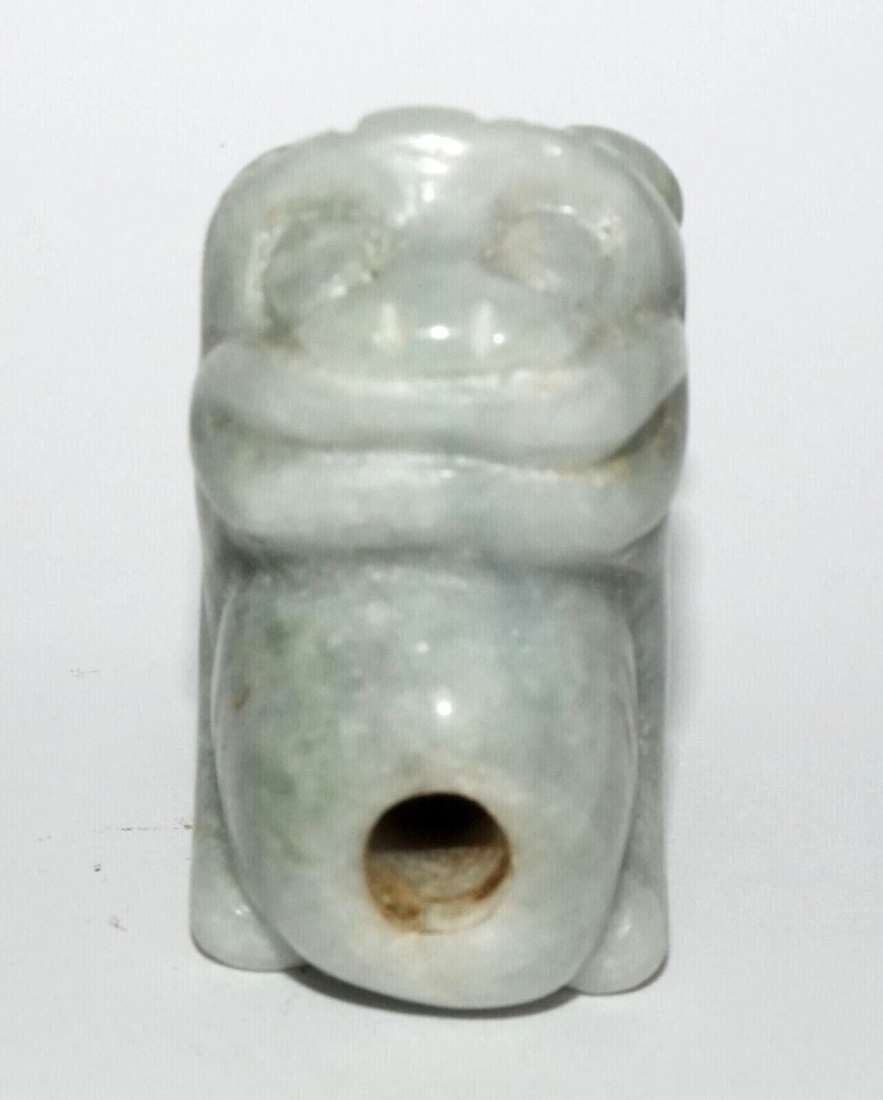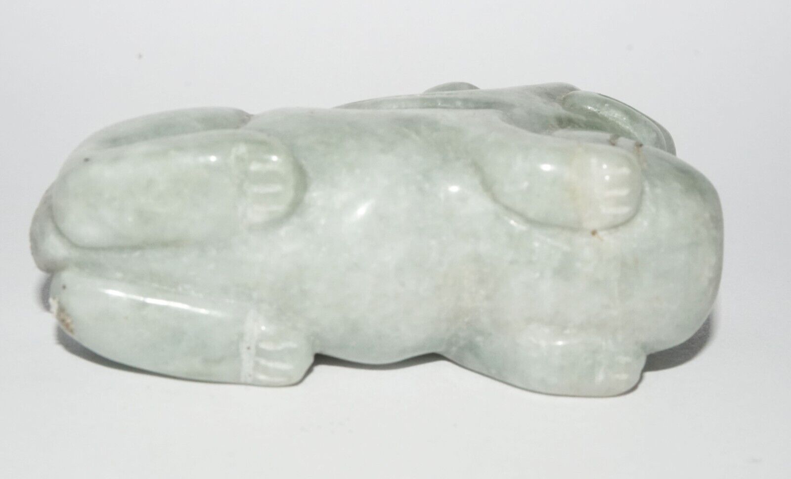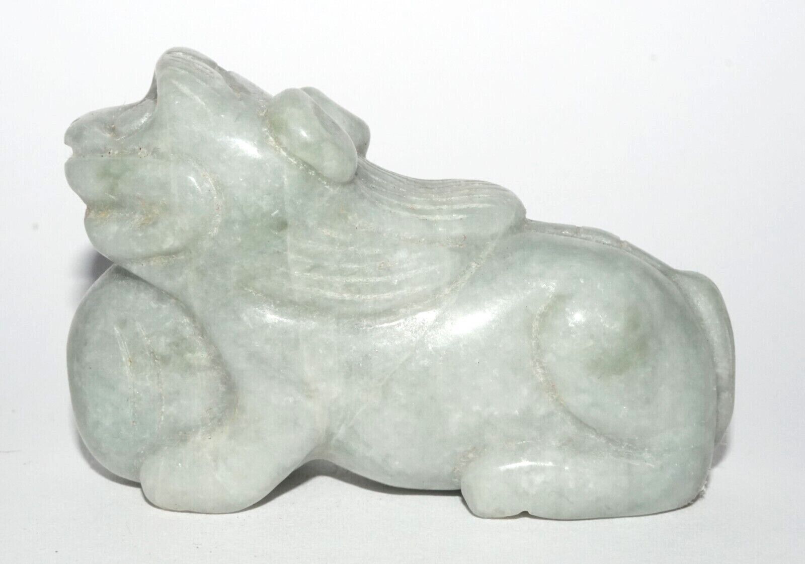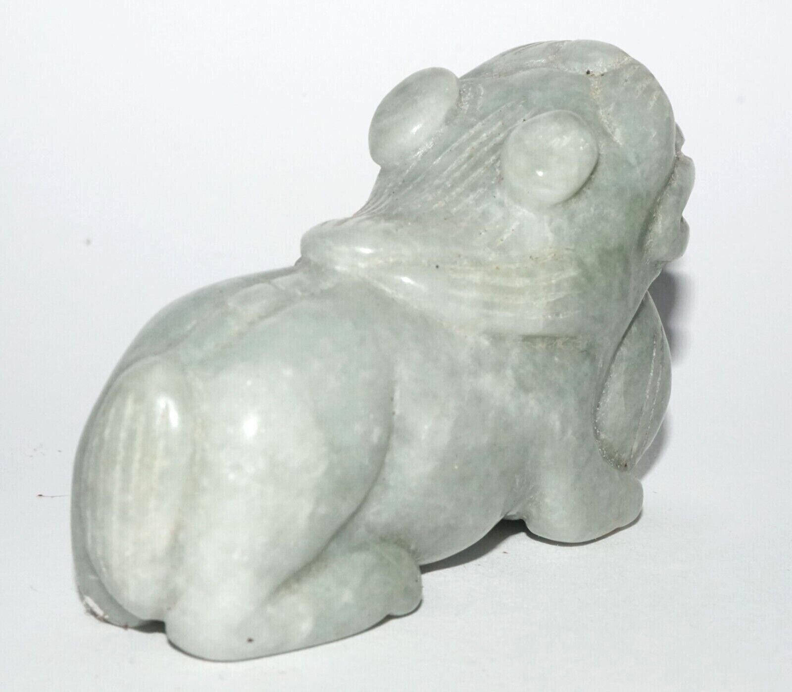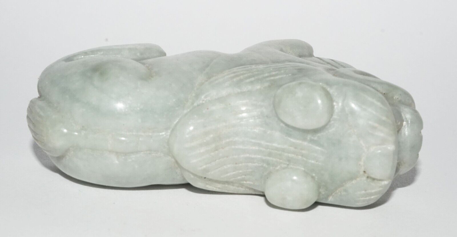 Up for sale from a recent estate in Honolulu Hawaii, this Vintage Chinese grey greenish white jadeite jade carved snuff bottle with a reclining foo dog resting his head on a ball motif. The condition is described above for more information please check the photos. Free local pick up possible!!!