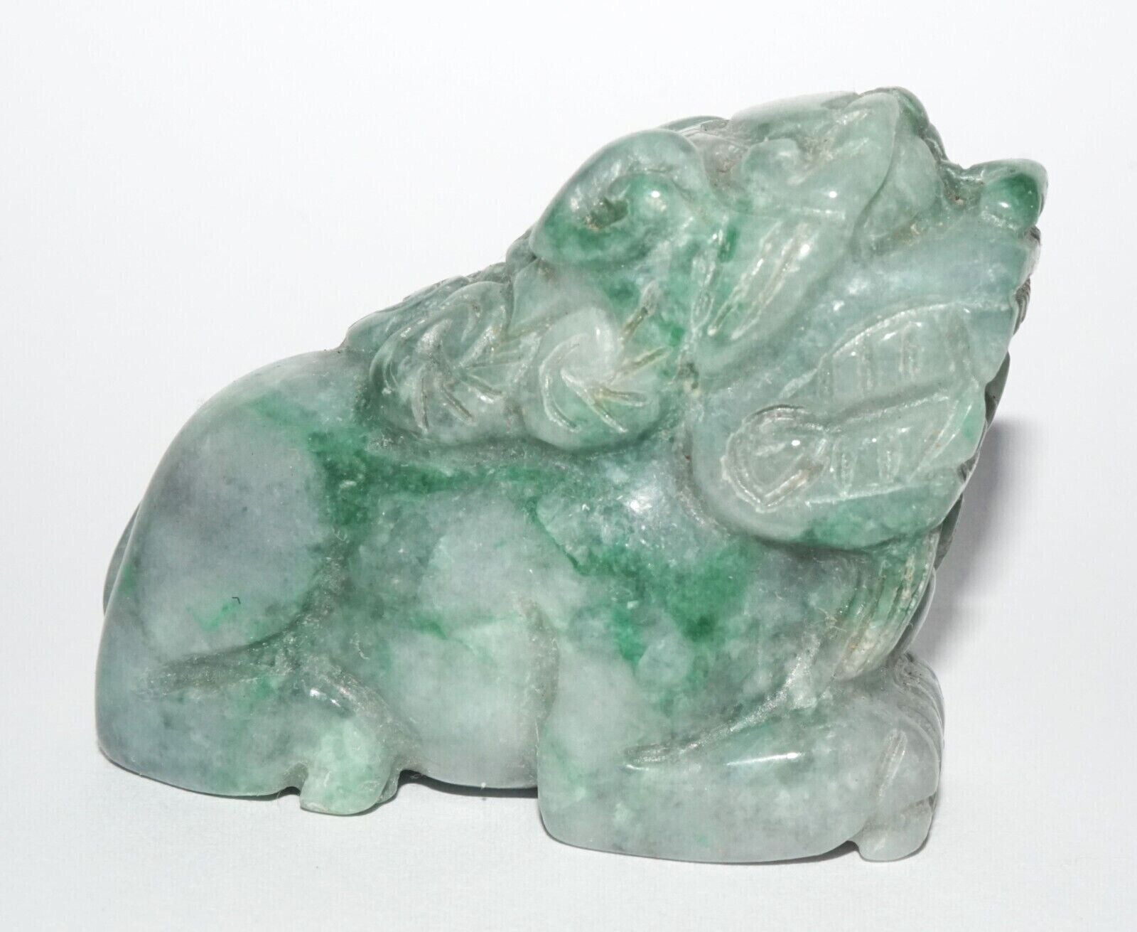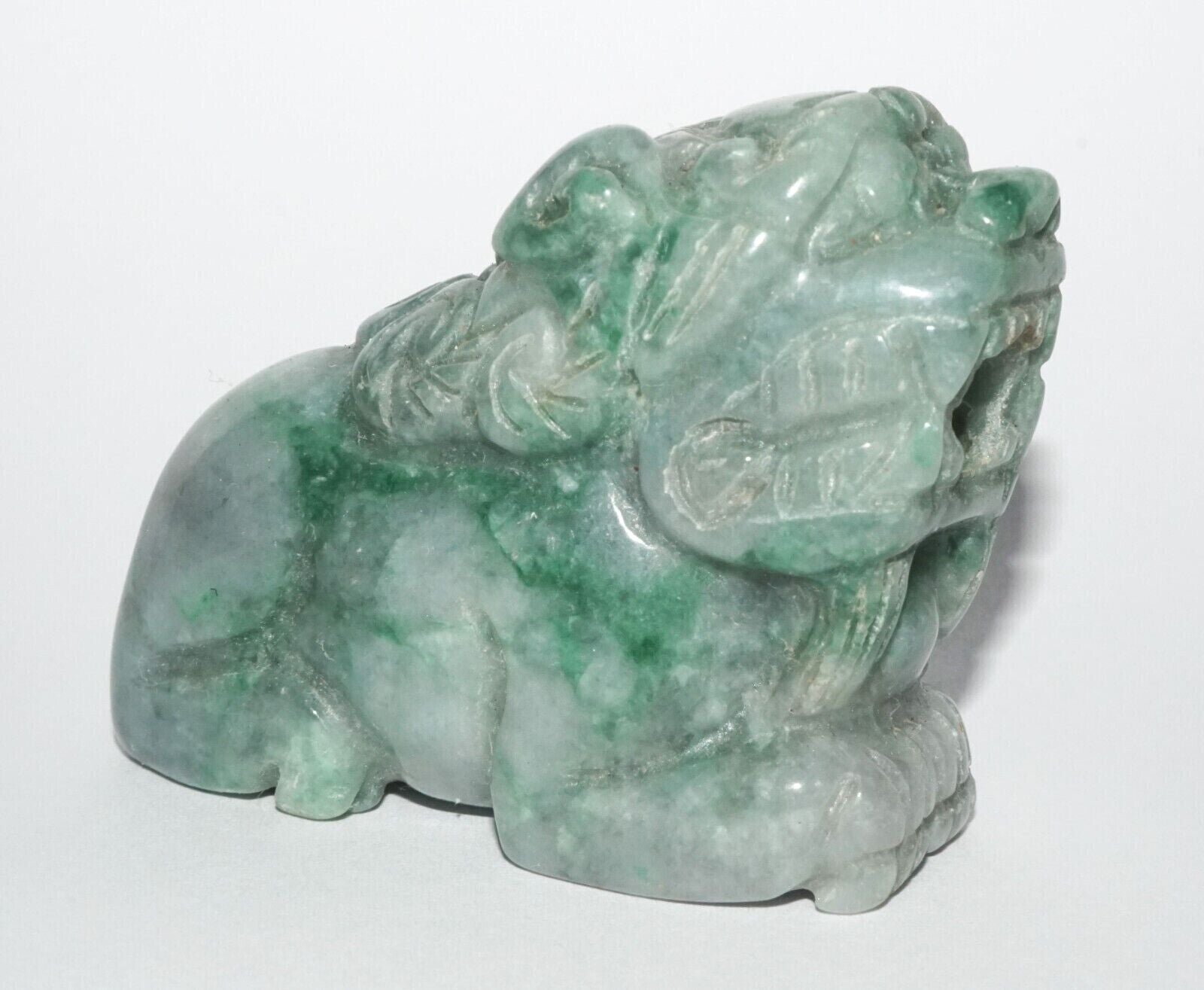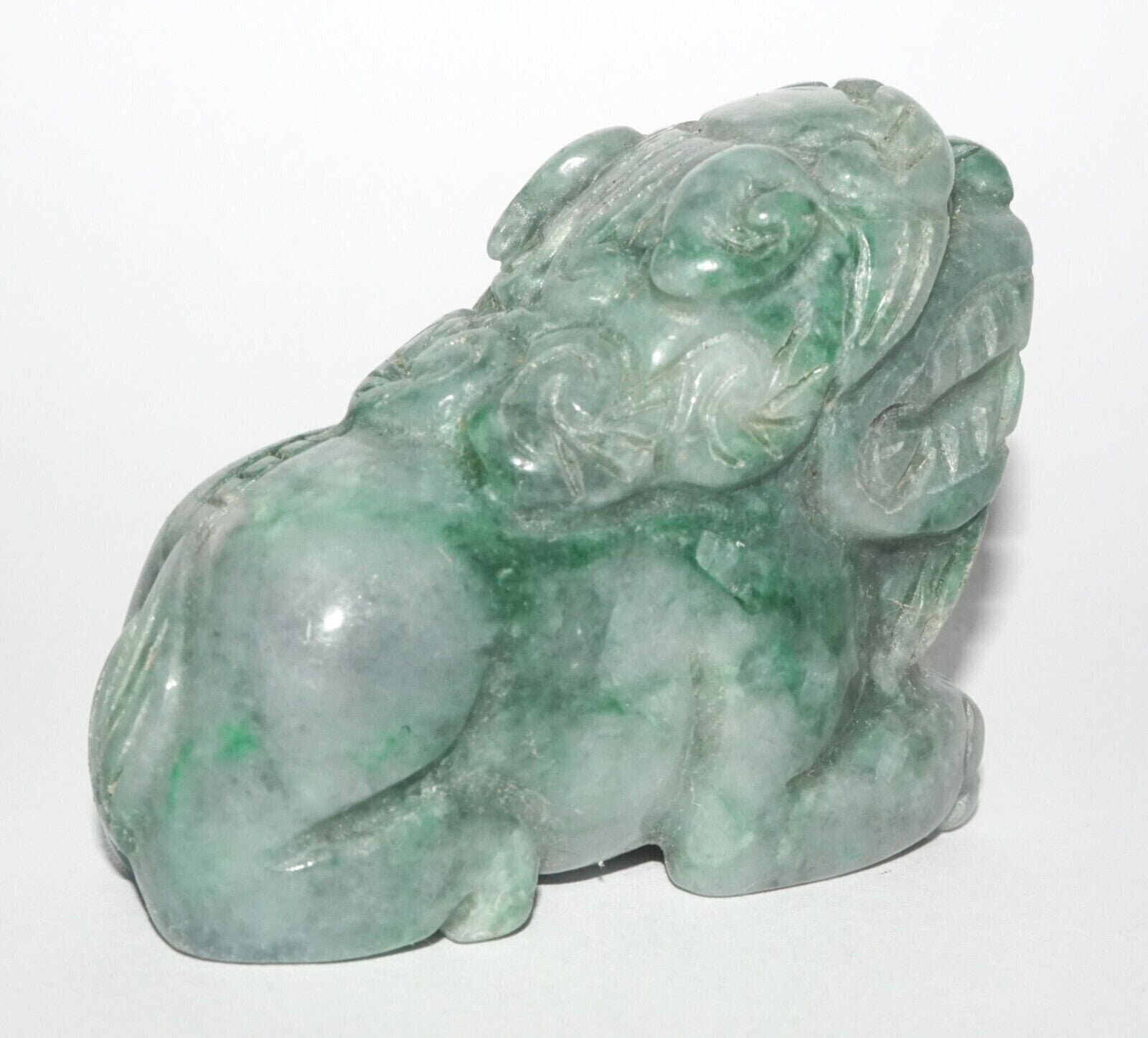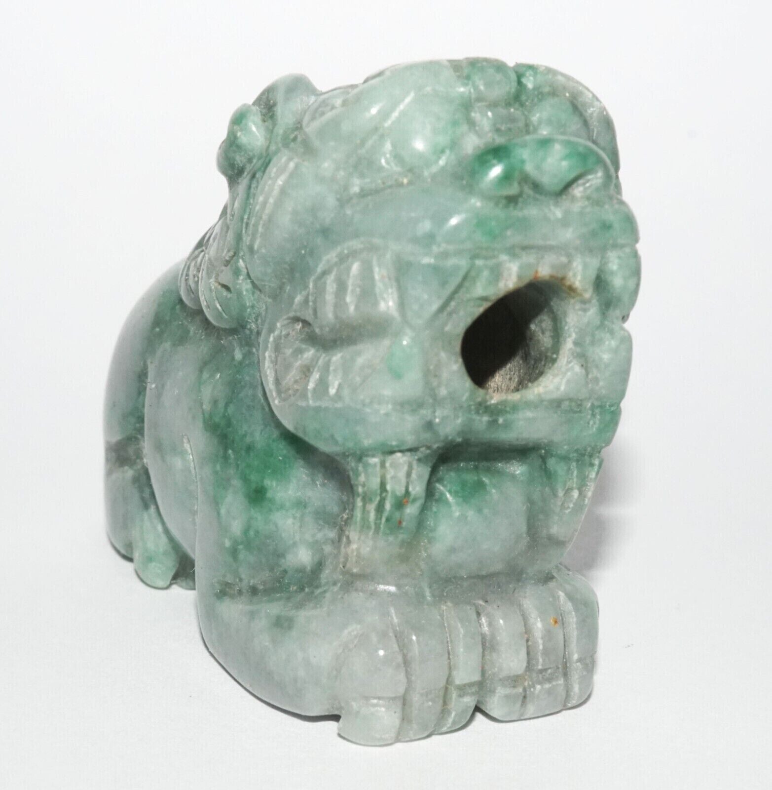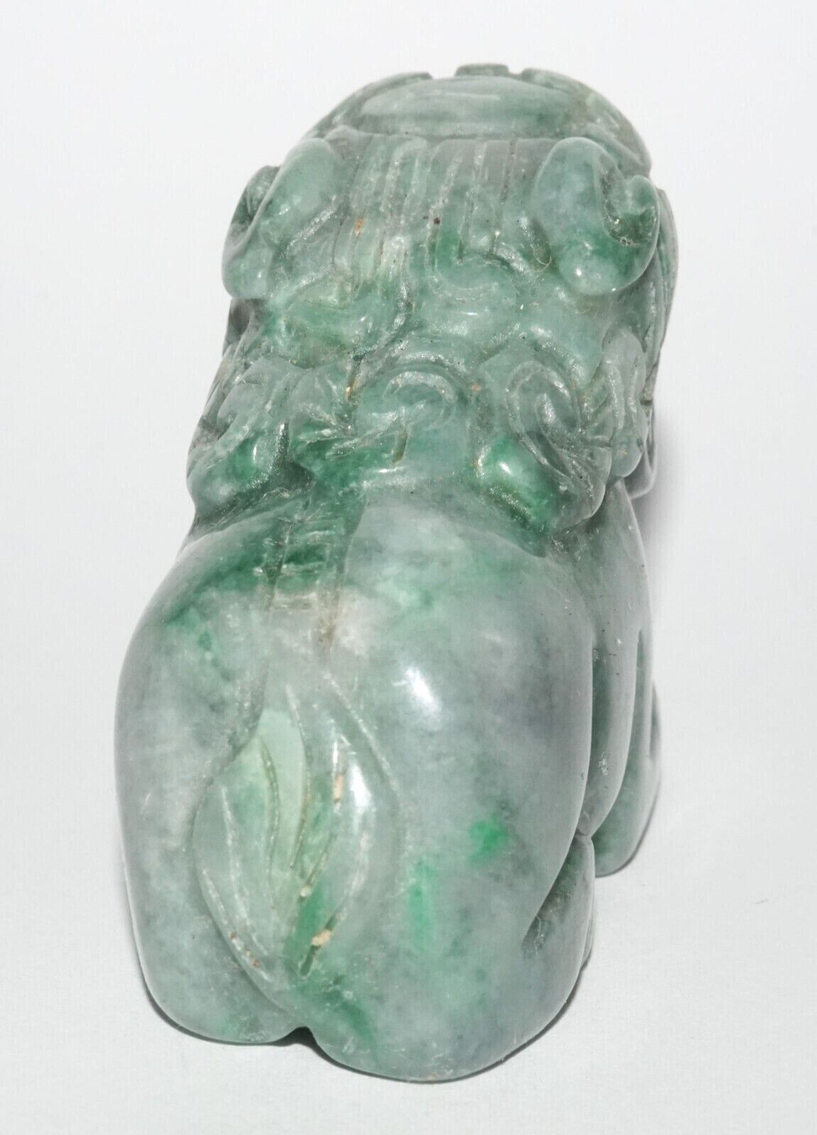 Vintage Chinese Jadeite Jade Carved Snuff Bottle w. Resting Foo Dog (LeS) G12