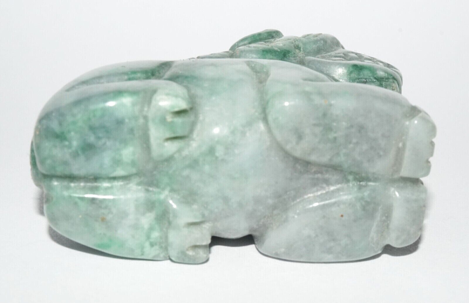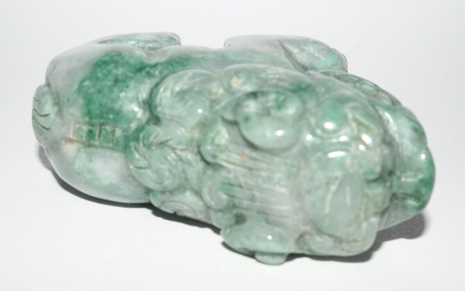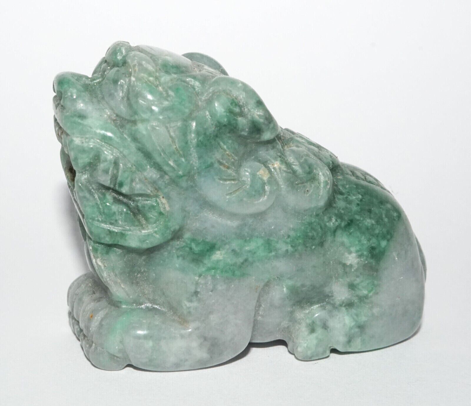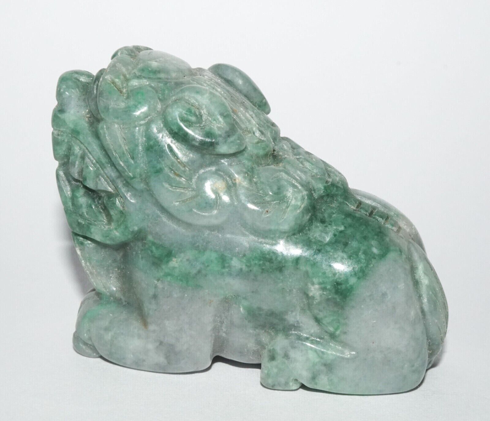 Up for sale from a recent estate in Honolulu Hawaii, this Vintage Chinese grey with mottled apple green jadeite jade carved snuff bottle with a resting foo dog motif. The condition is described above for more information please check the photos. Free local pick up possible!!!