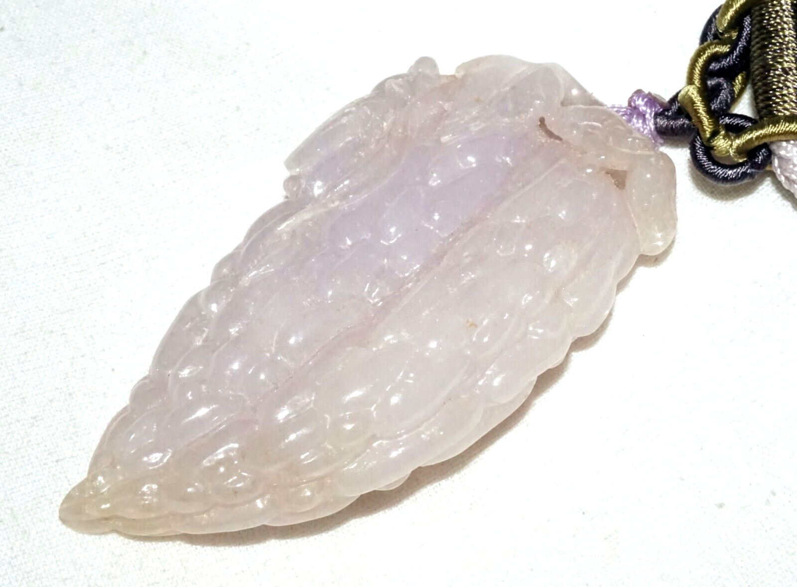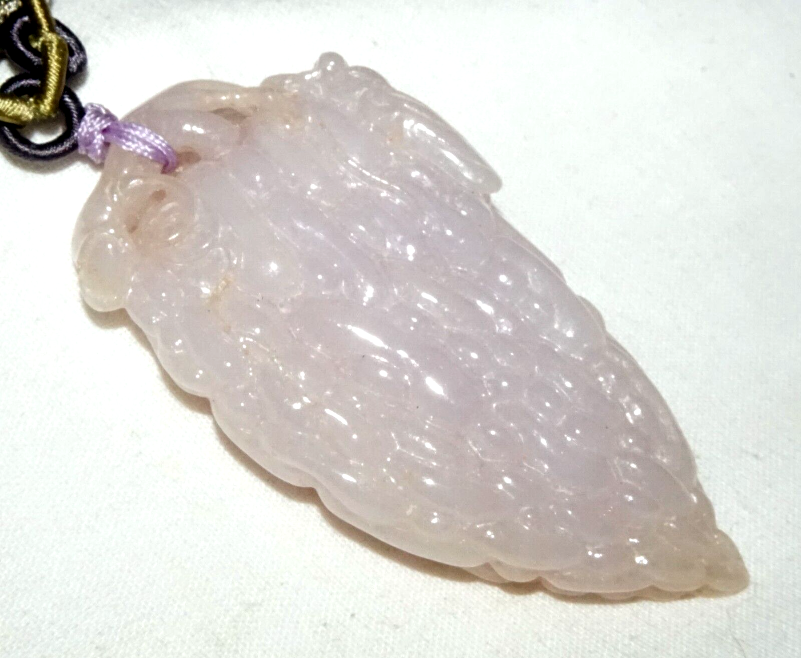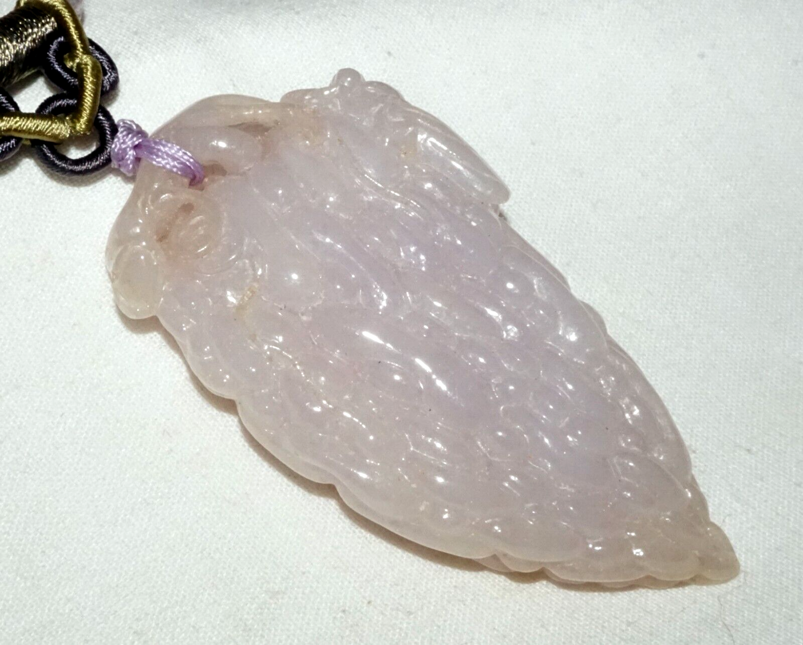 Vintage Chinese Lavender Jade Carved Pendant Bitter Melon & Bug Motif (InS)#L4