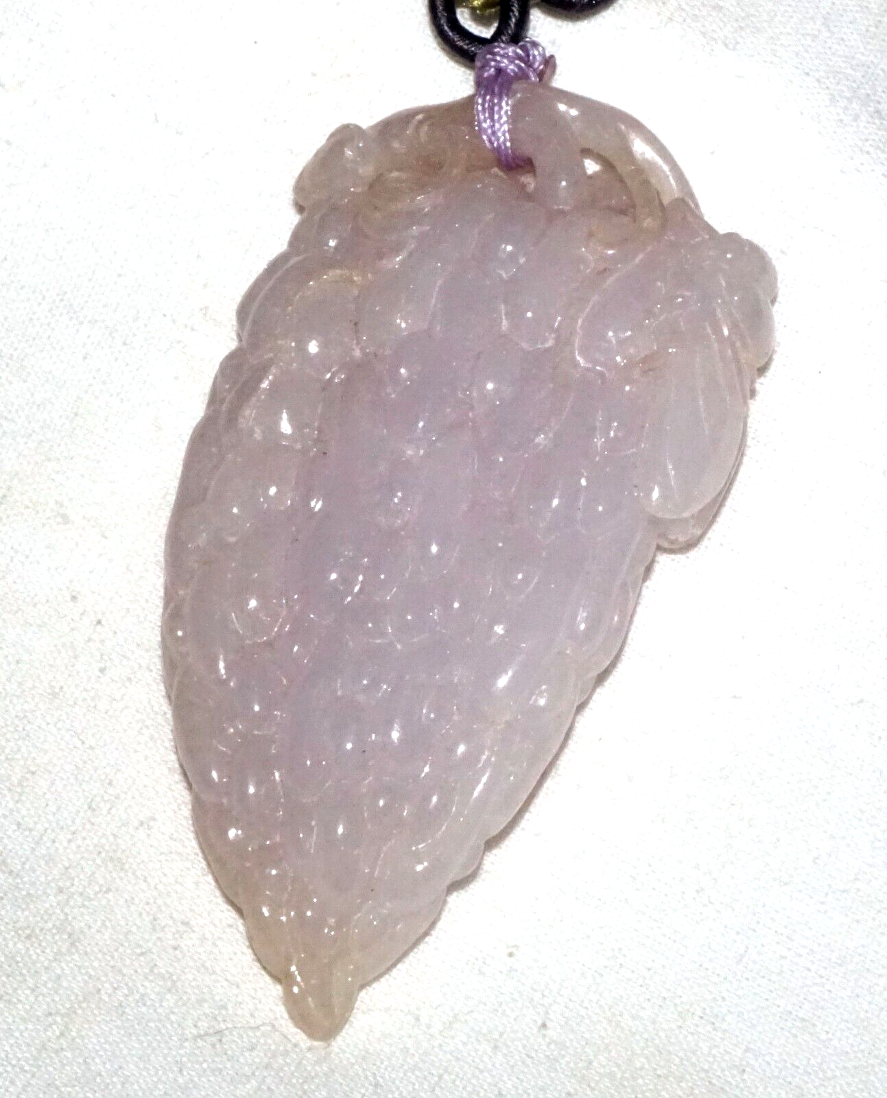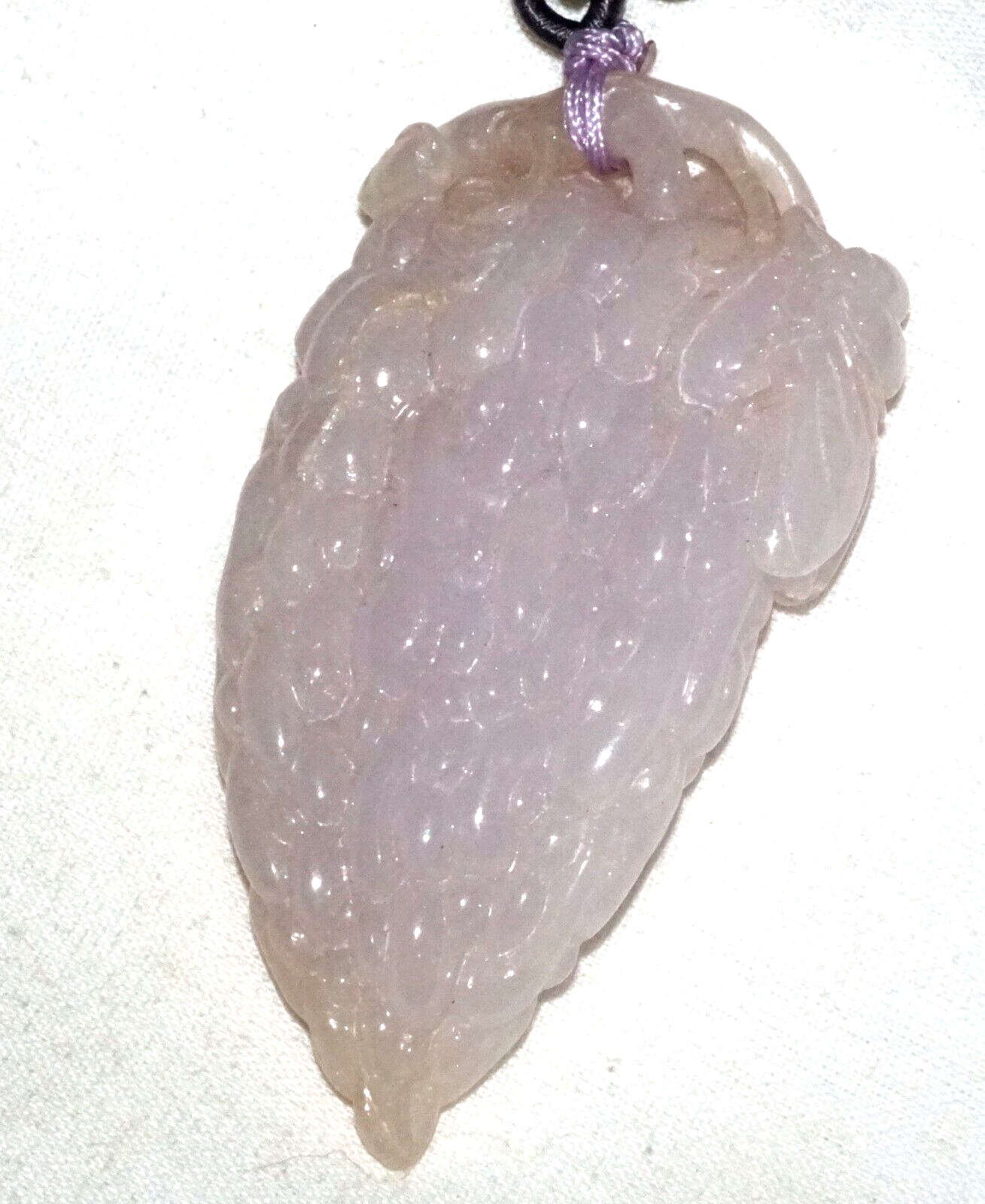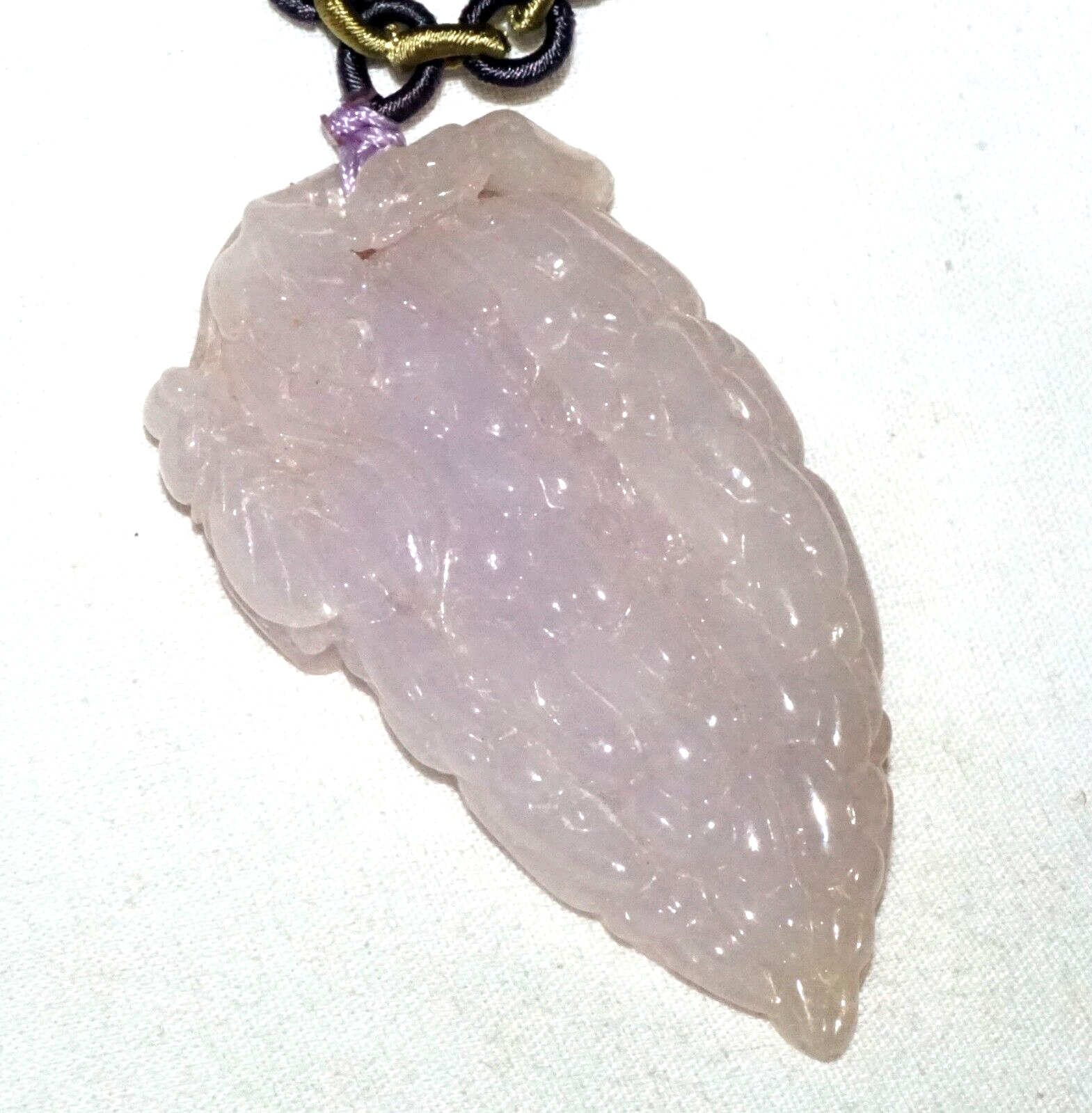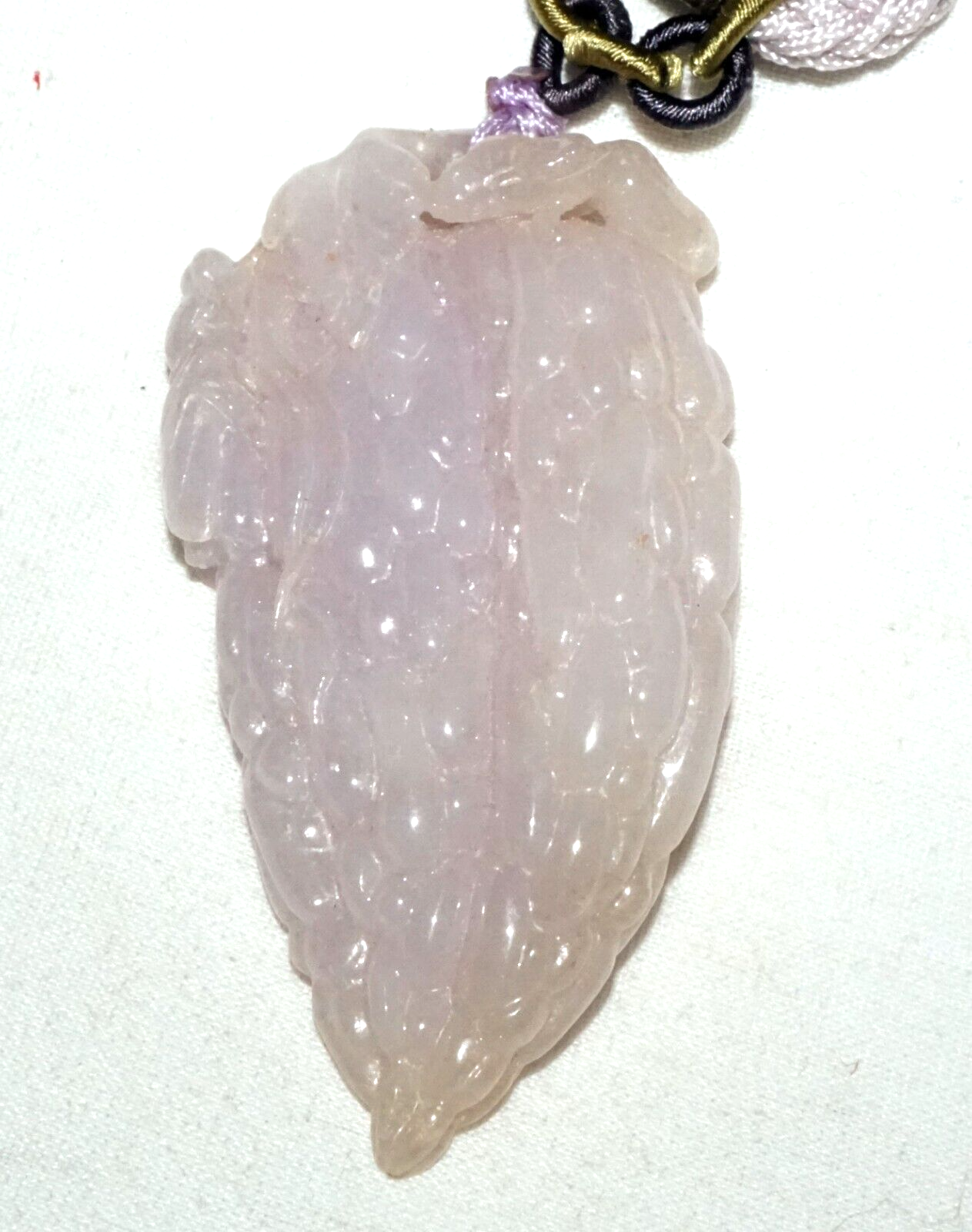 Up for sale from a recent estate in Honolulu Hawaii, this Vintage Chinese lavender jade carved pendant that has a bitter melon and bug motif and is suspended from a cord necklace. The condition is described above for more information please check the photos. Free local pick up possible!!!