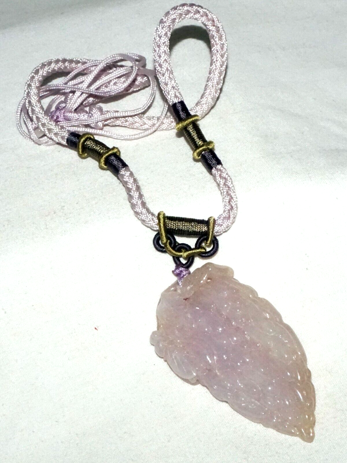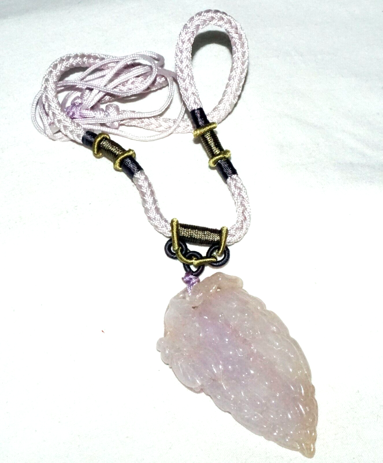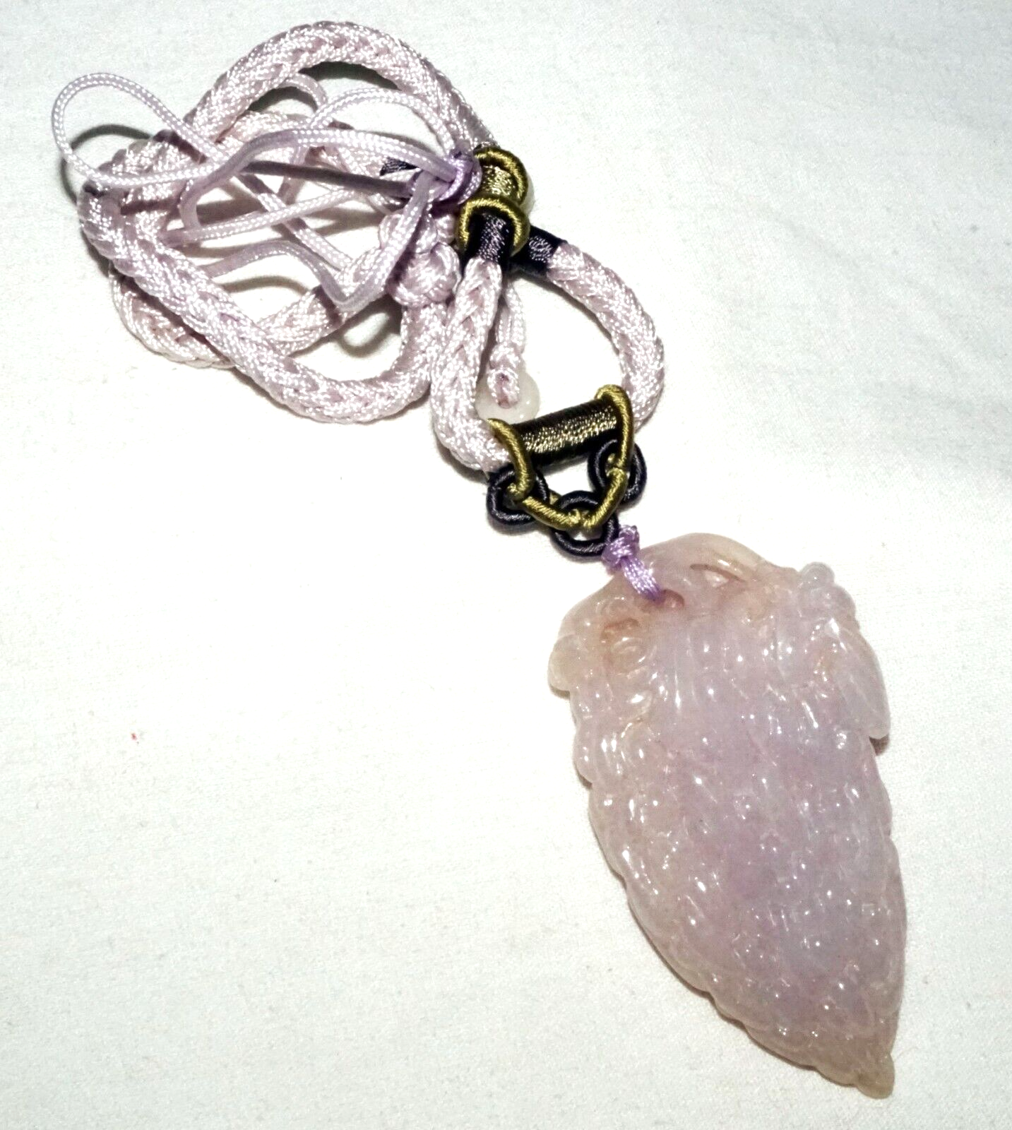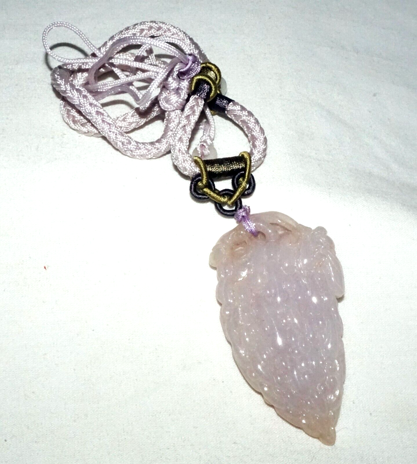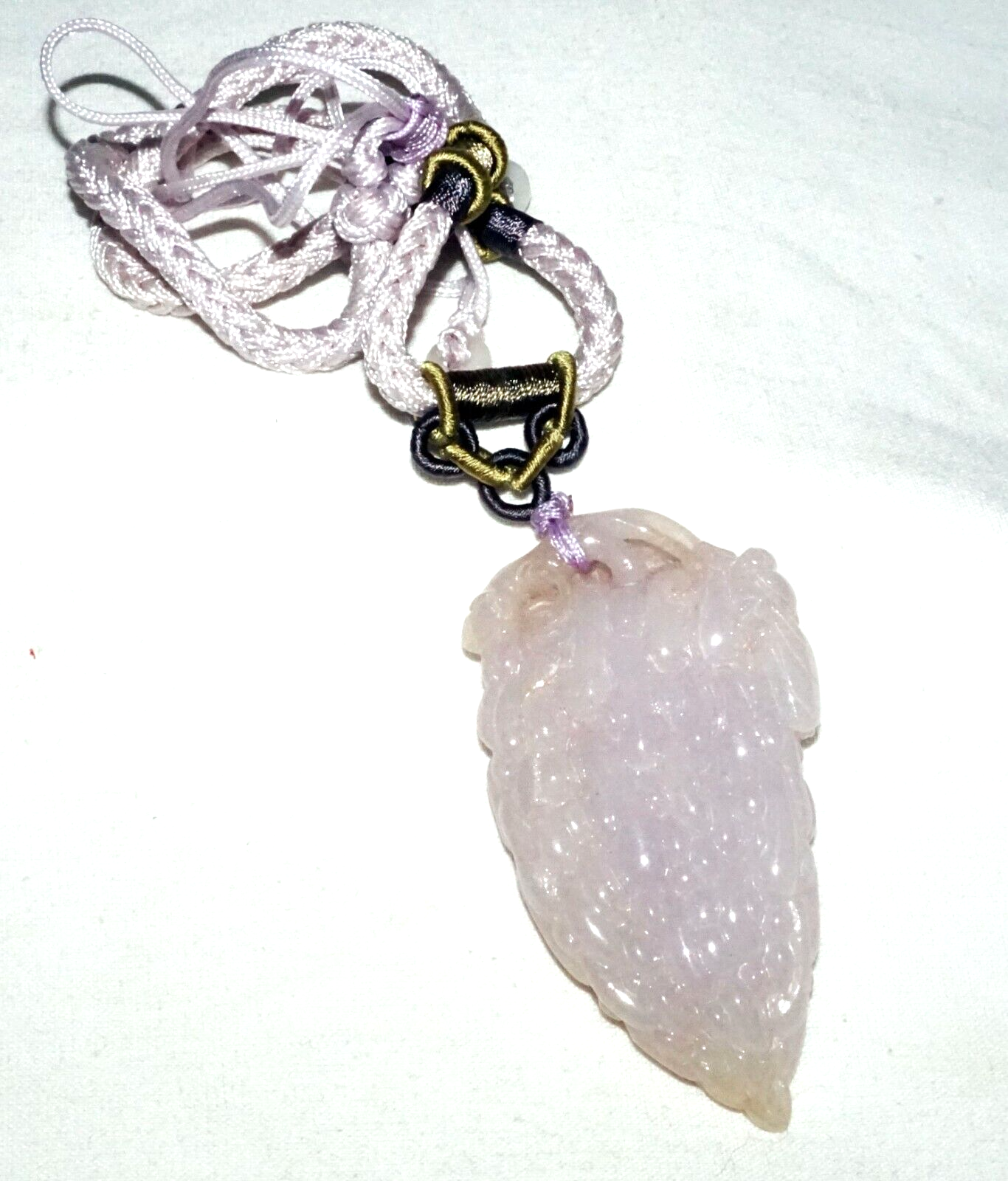 Up for sale from a recent estate in Honolulu Hawaii, this Vintage Chinese lavender jade carved pendant that has a bitter melon and bug motif and is suspended from a cord necklace. The condition is described above for more information please check the photos. Free local pick up possible!!!