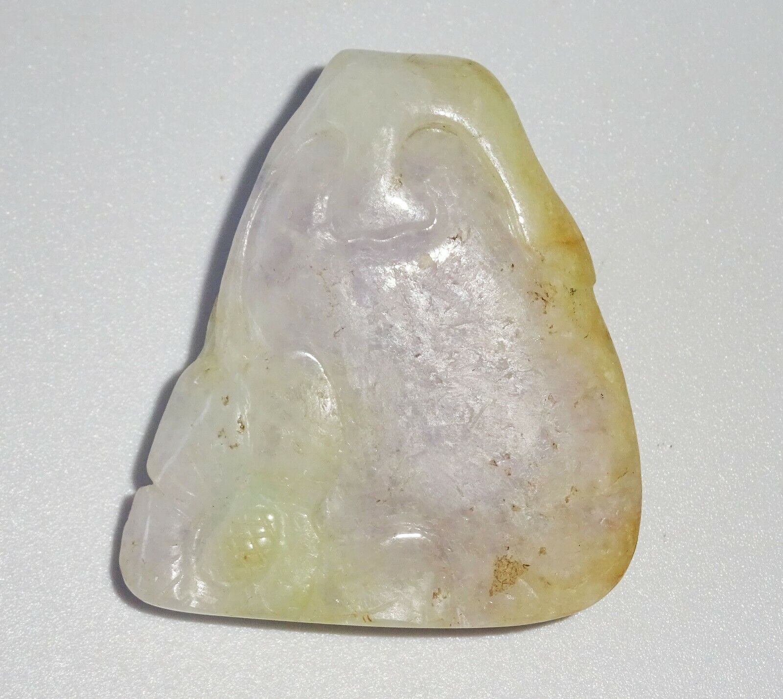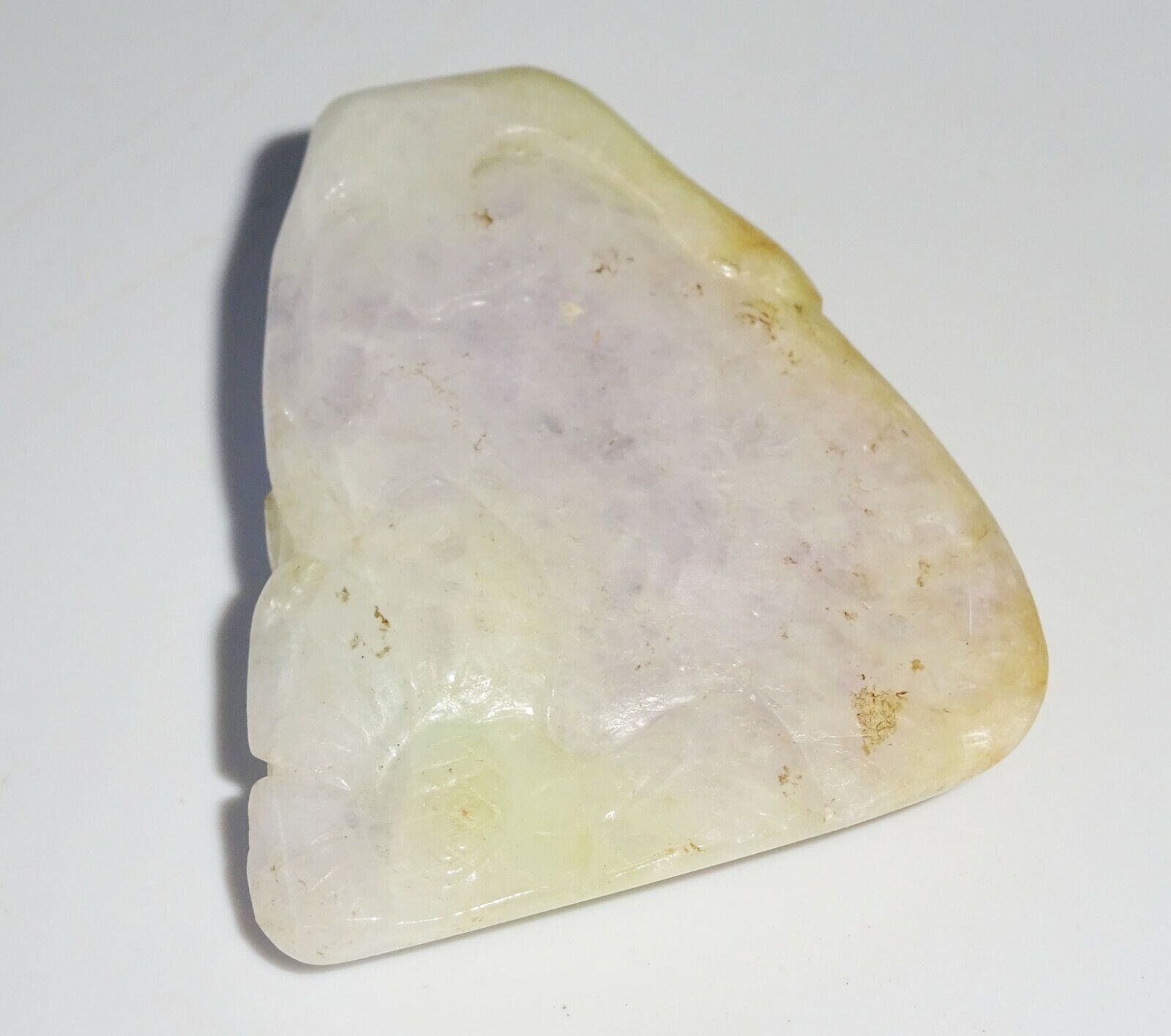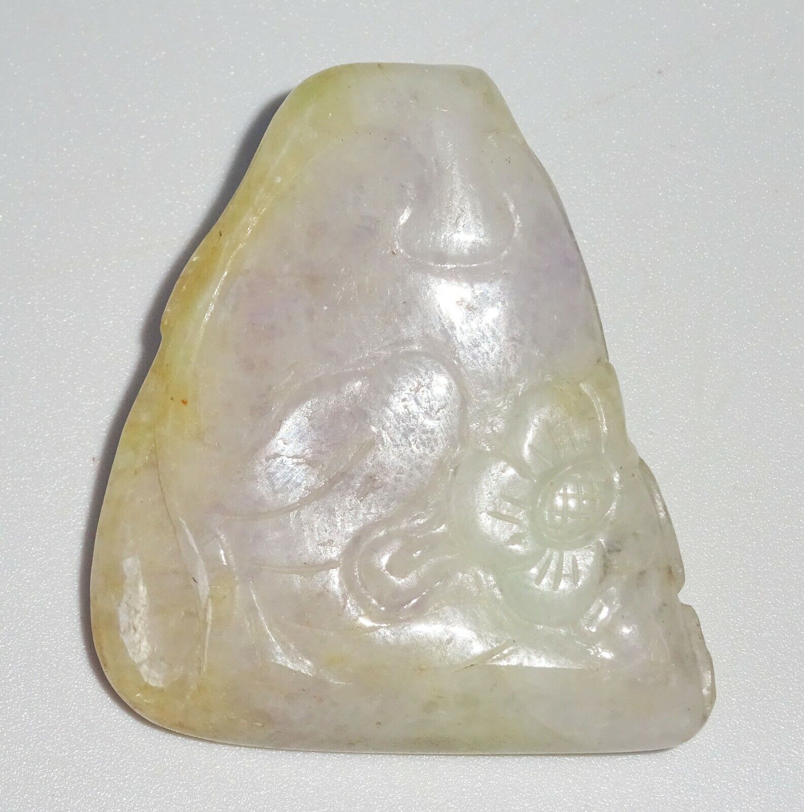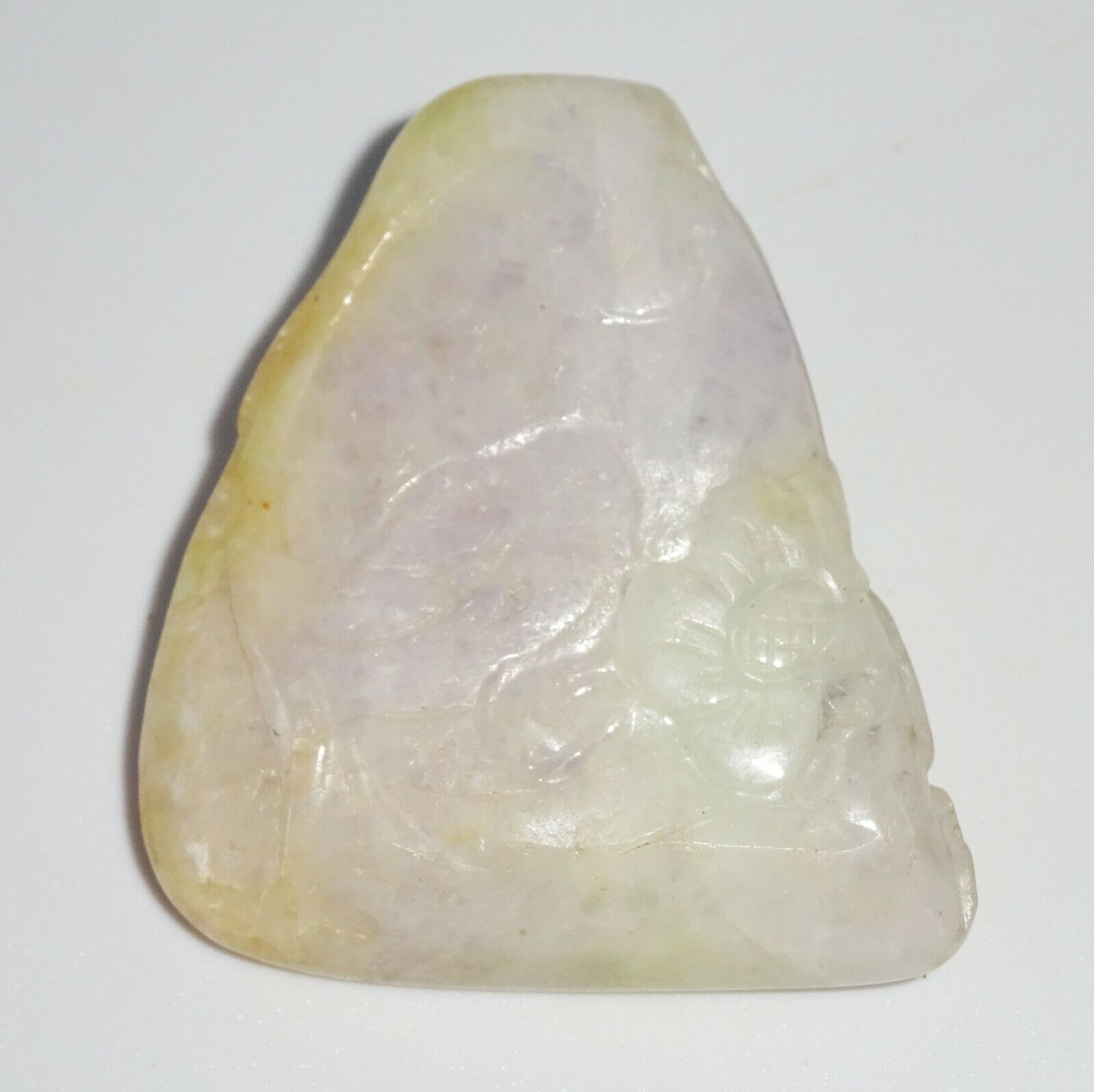 Vintage Chinese Lavender Jade Rock w. Flower Motif Carving (FeO) #43b